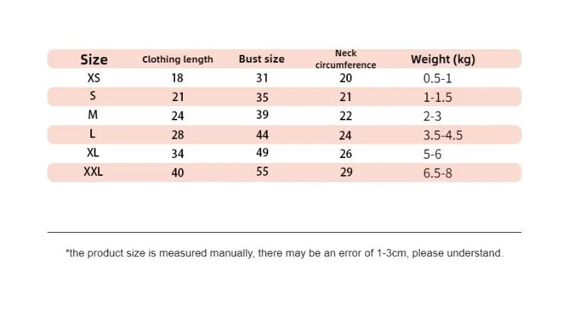 Información del producto Categoría: Vestidos Género aplicable: Universal ★Lista de correspondencia de tamaño y peso de mascotas: XS: 0,5-1 KG S: 1-1,5 KG M: 2-3 KG L: 3,5-4,5 KG XL: 5-6KG XXL: 6,5-8 KG