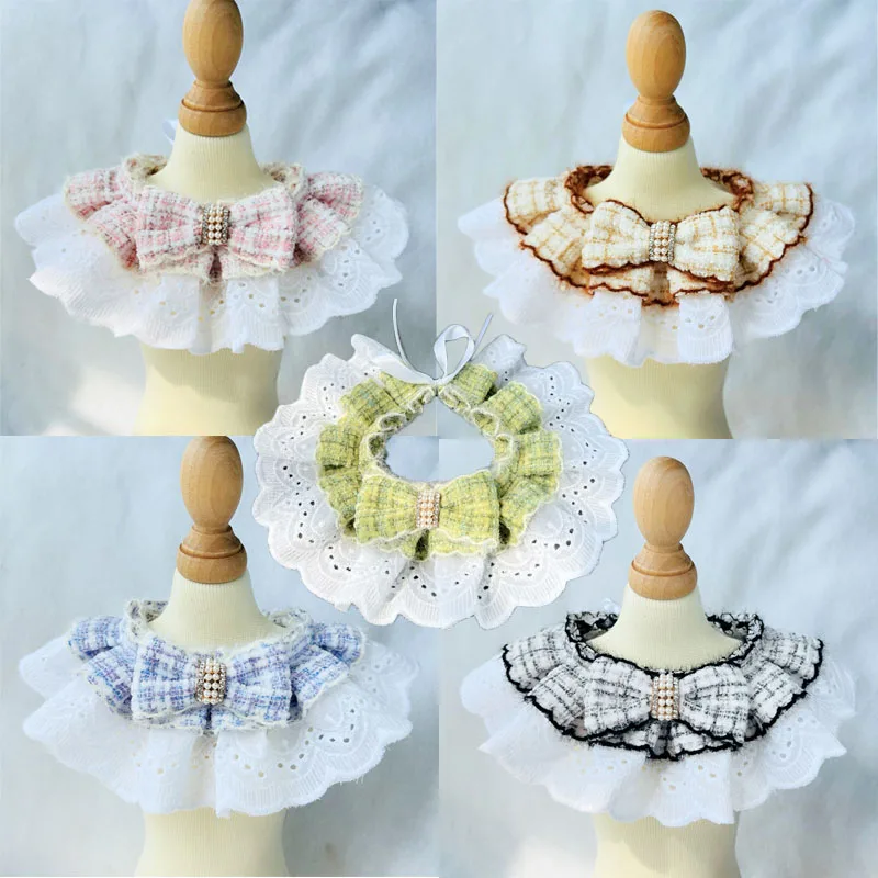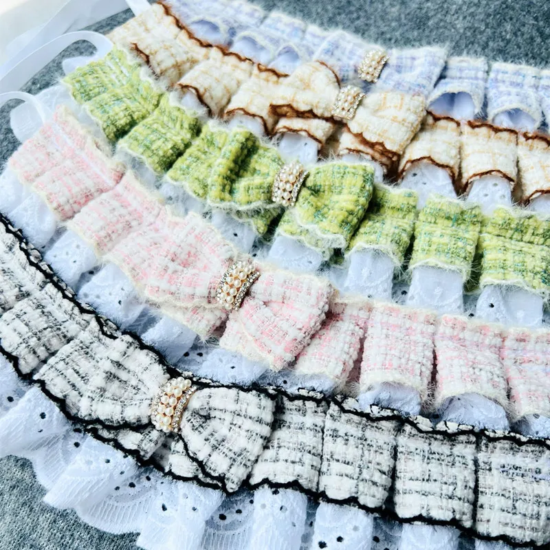 Accesorios para perros, chal para niñas, rosa, verde, azul y negro, baberos para perros, collar con pajarita de perlas para perros pequeños y medianos, bufanda para gatitos, Banadana