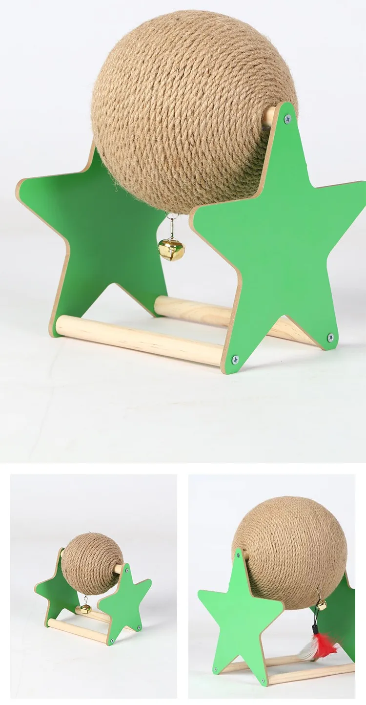 Muy bien hecho: no madera contrachapada, ni cartón - buena madera, bola de sisal. Incluye tornillos y un destornillador para el montaje.