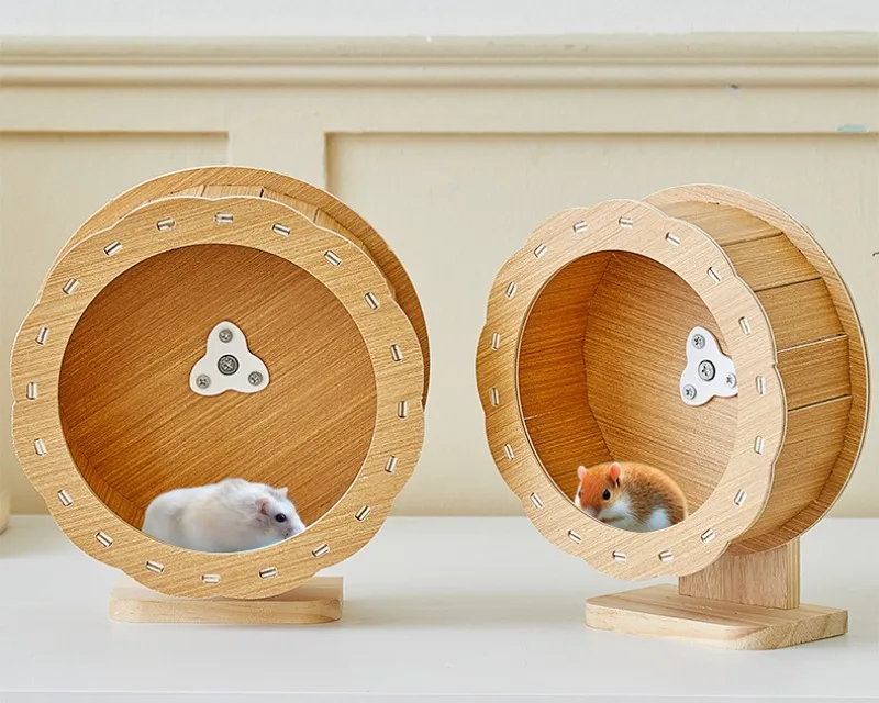 Rueda para hámster de madera maciza de 21CM, ejercicio silencioso, rueda para correr con soporte, tren con rodillo, juguetes para animales pequeños, productos para mascotas