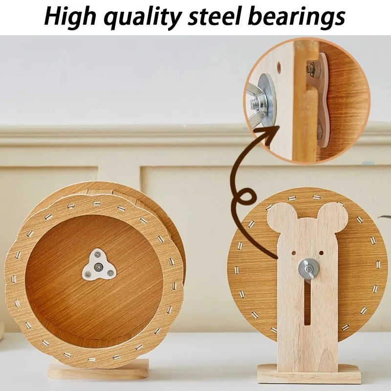 Material de madera macizaAjuste libremente la altura de la rueda de marcha.Rodamientos de acero de alta calidad.Rodillo silencioso para hámster Tipo adecuado:S 12CM un hámster pygmy, osoMedio 19CM un hámster pigmico, osoGrande 21CM un hámster pygmy, oso