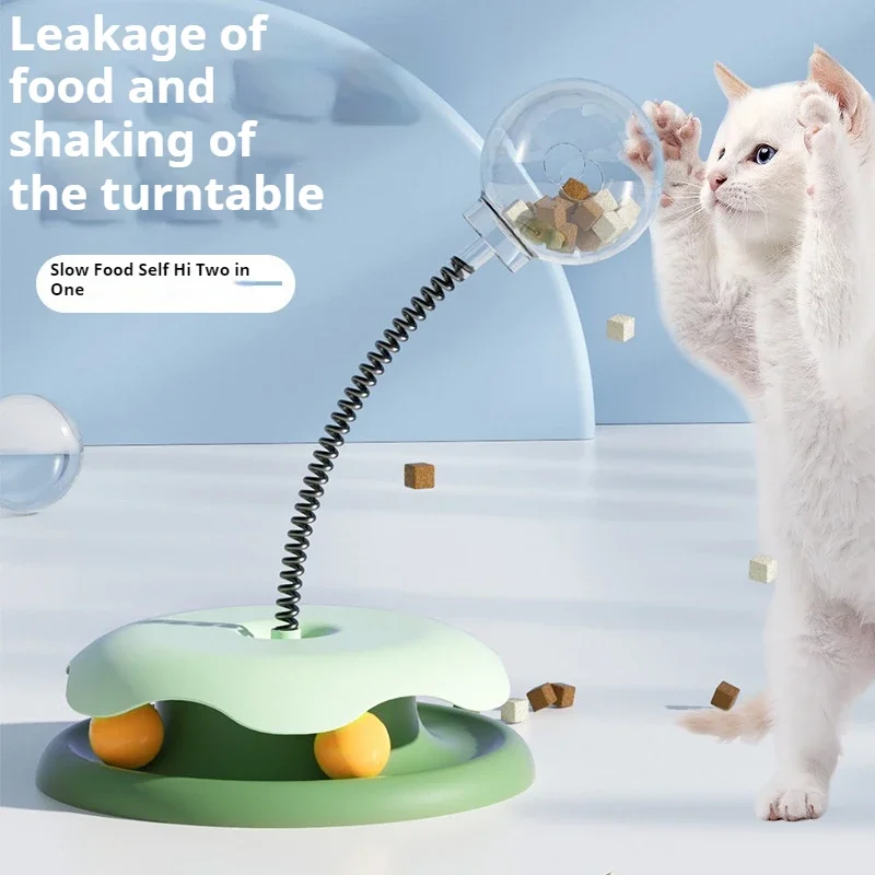 Rueda de juguete para gato con bola de fuga de primavera, plato de entretenimiento para gato, juego para mascotas