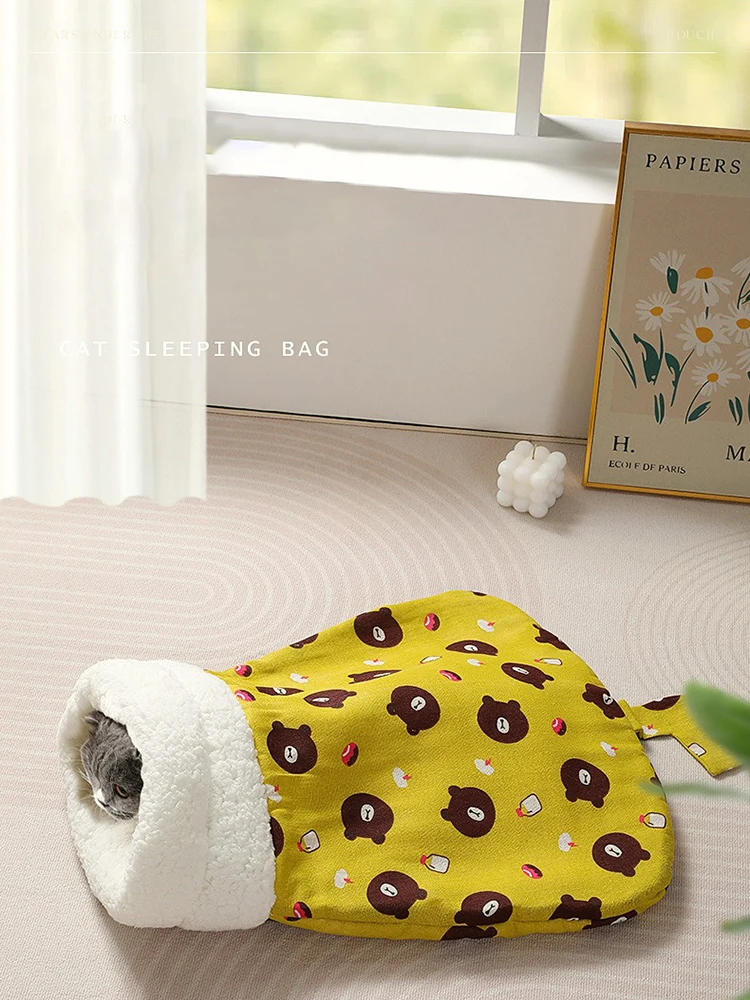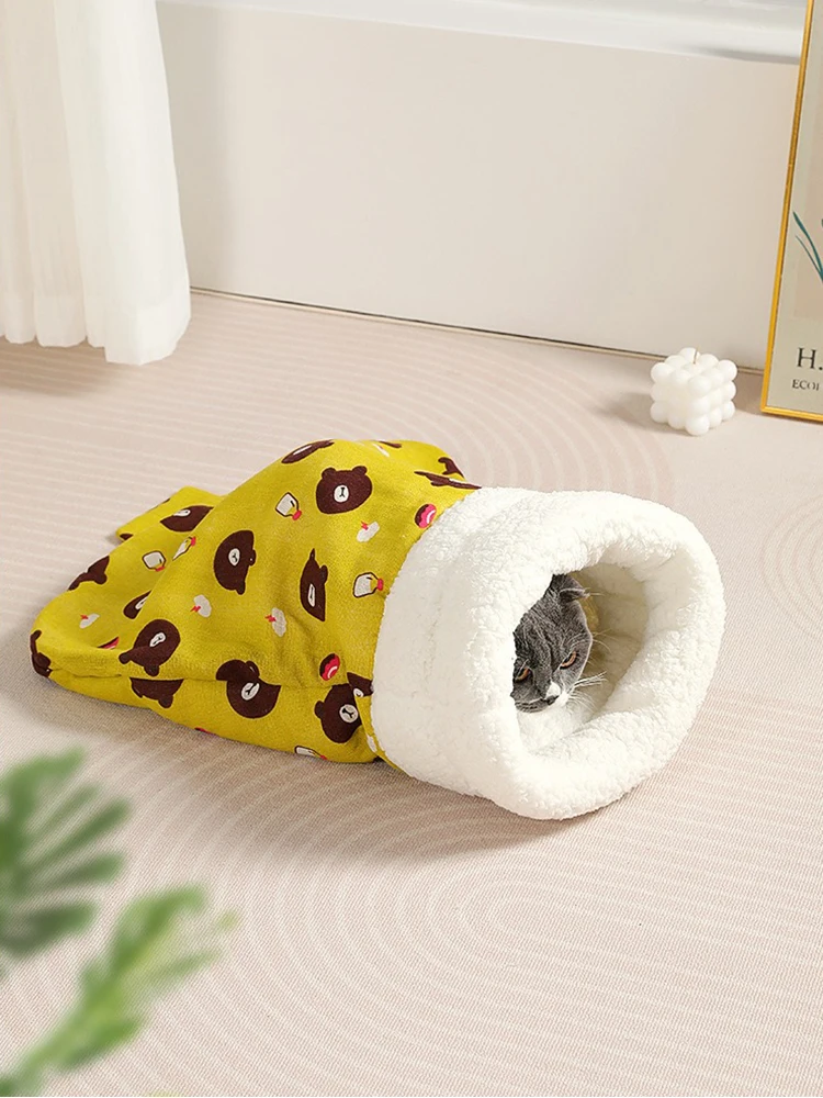 Saco de dormir cálido para gatos, colcha tipo bolsillo, cama para mascotas, tacto suave y esponjoso, estera para mascotas, nido cómodo, suministros para mascotas