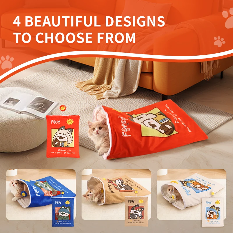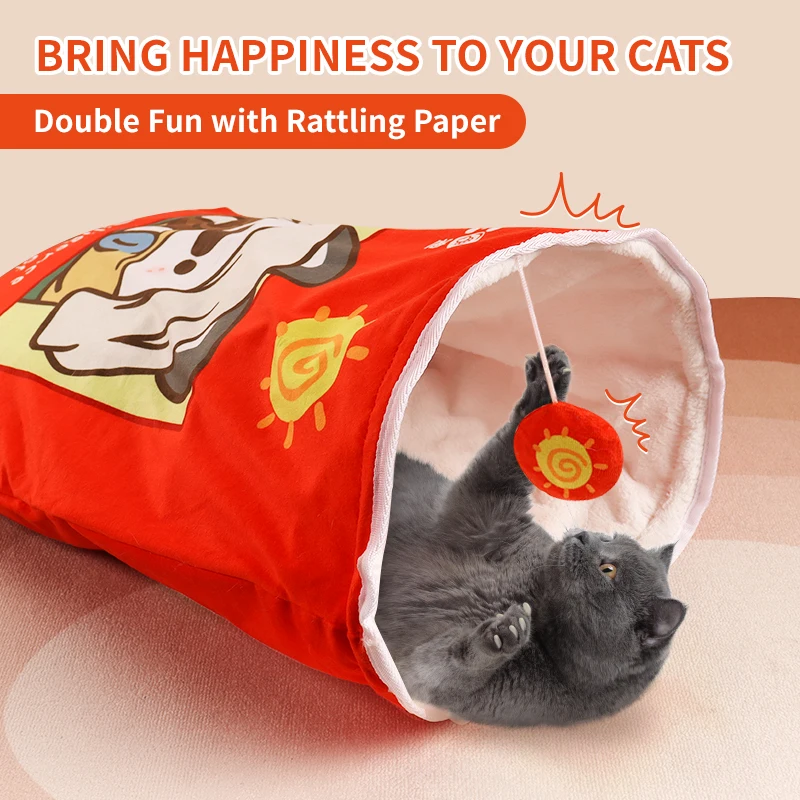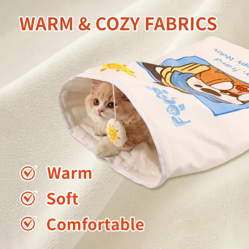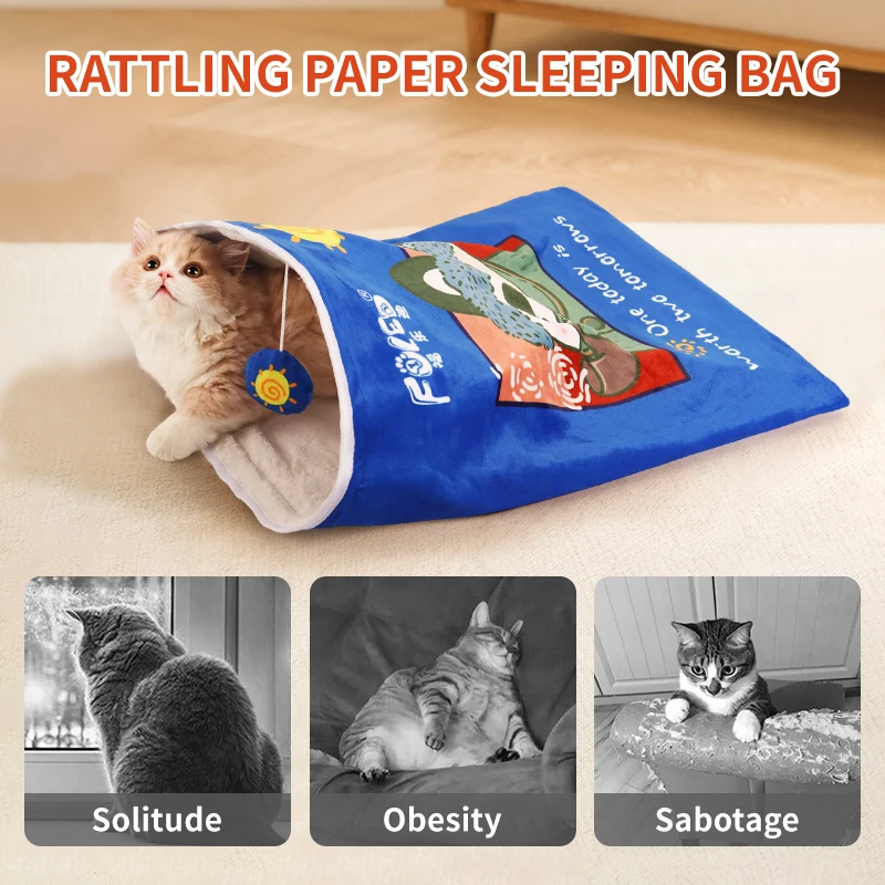 Diversión con papel arrugado: este saco de dormir para gatos está forrado con papel arrugado, lo que agrega una capa adicional de emoción al tiempo de juego. A los gatos les encantarán los sonidos divertidos, lo que hace que este saco de dormir sea un acogedor escondite y un atractivo espacio de juego.