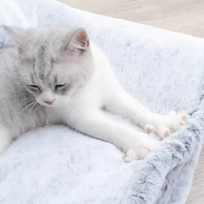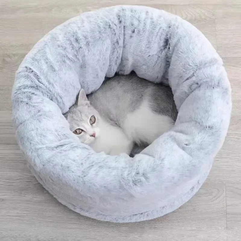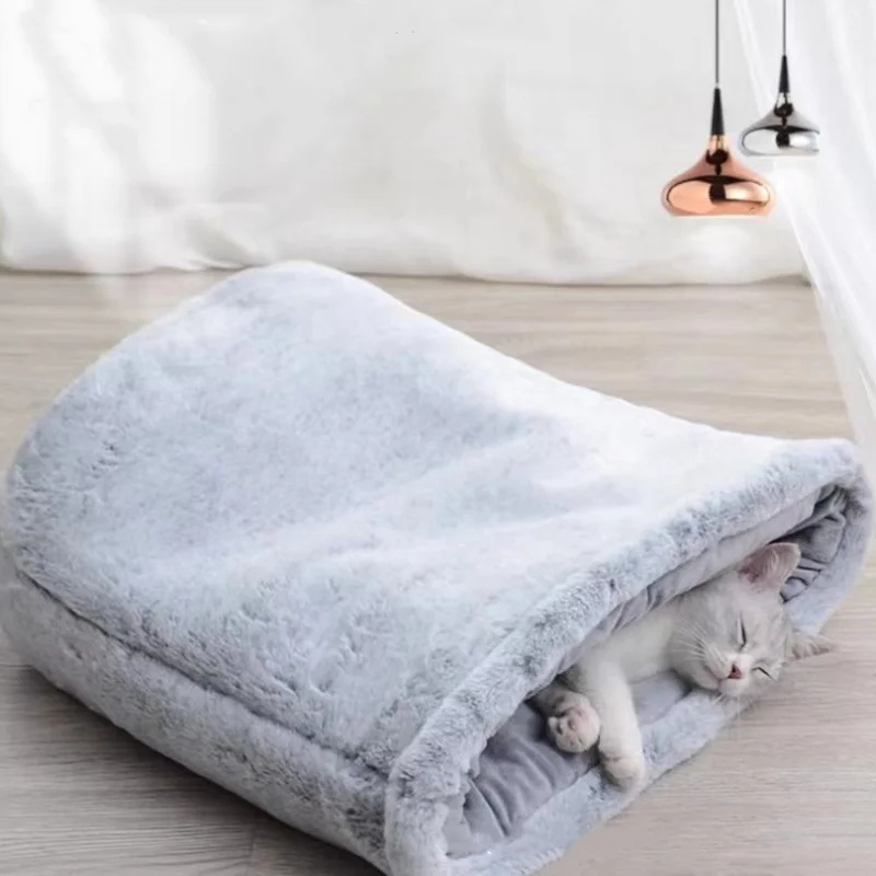 Saco de dormir de lana cálido para mascotas, cama gris suave y gruesa para gatos, perros, túnel semicerrado, casa para mascotas en cojín de invierno para gatitos