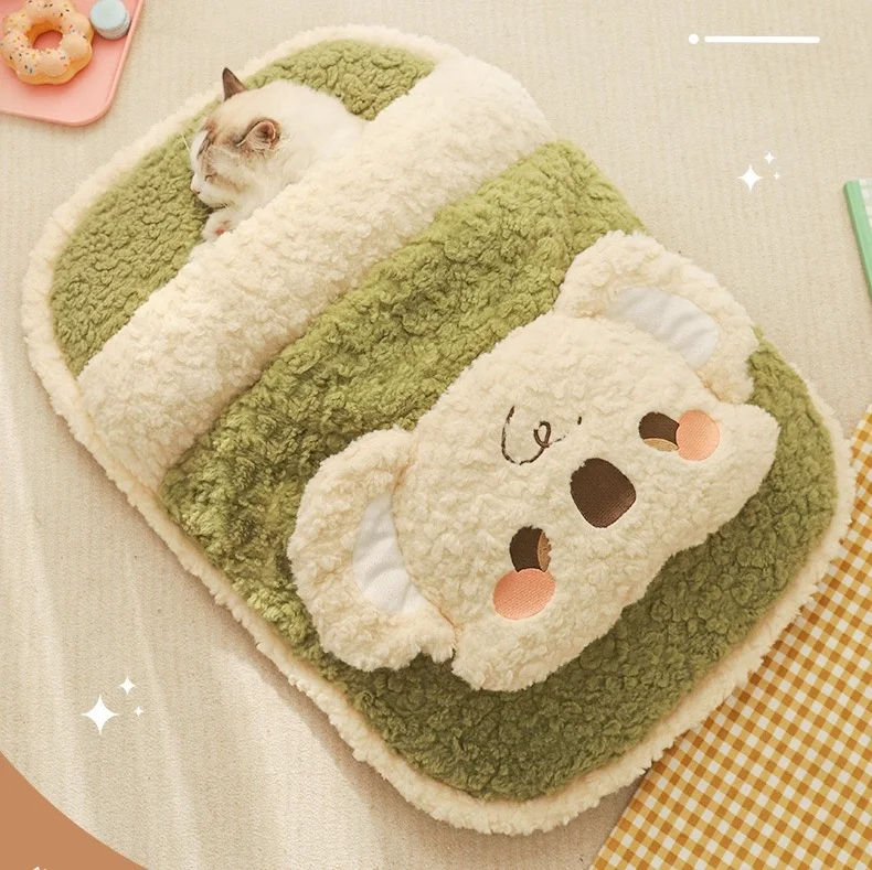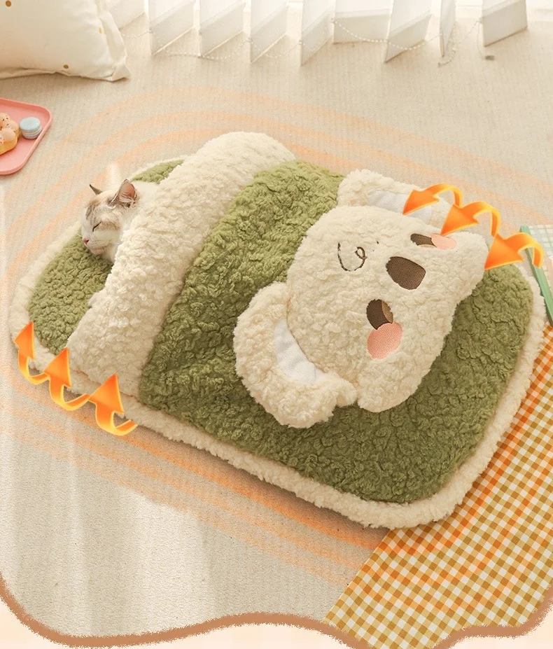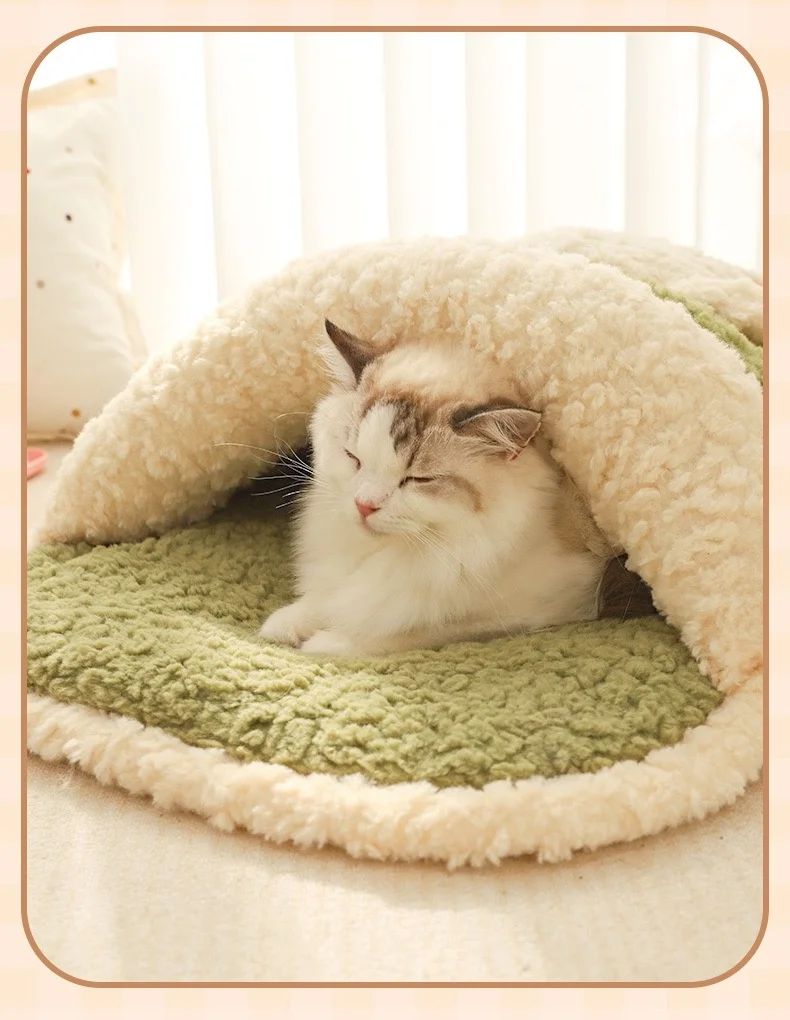 Saco de dormir de lana para gatos, cama cálida de invierno para gatitos, nido de dormir grueso semicerrado para gatos, cama para gatos, saco de dormir cueva