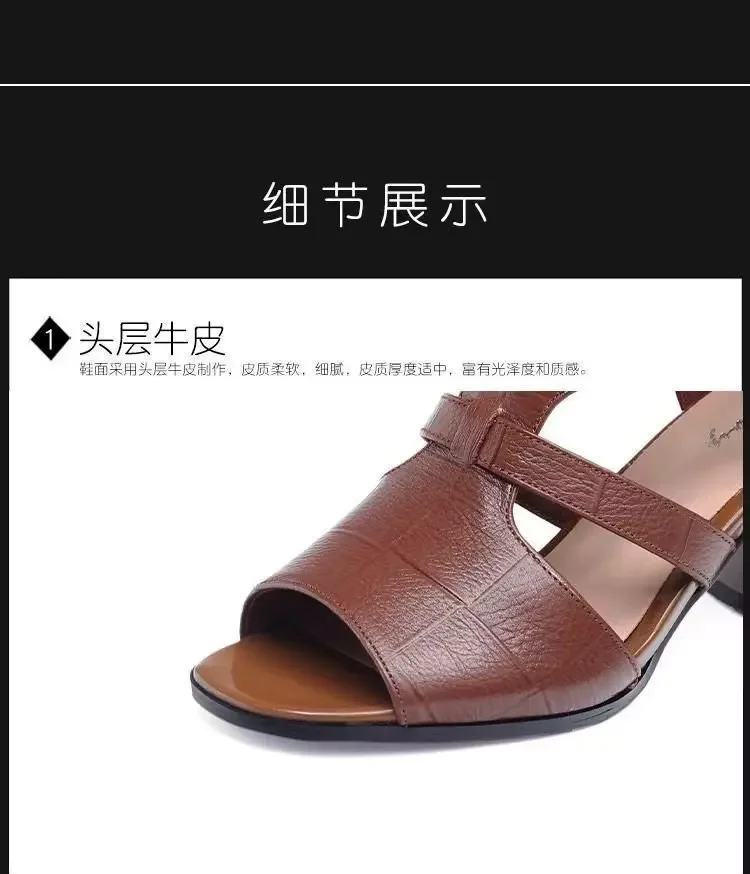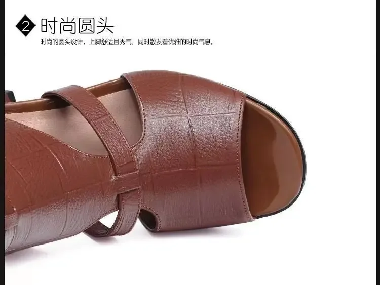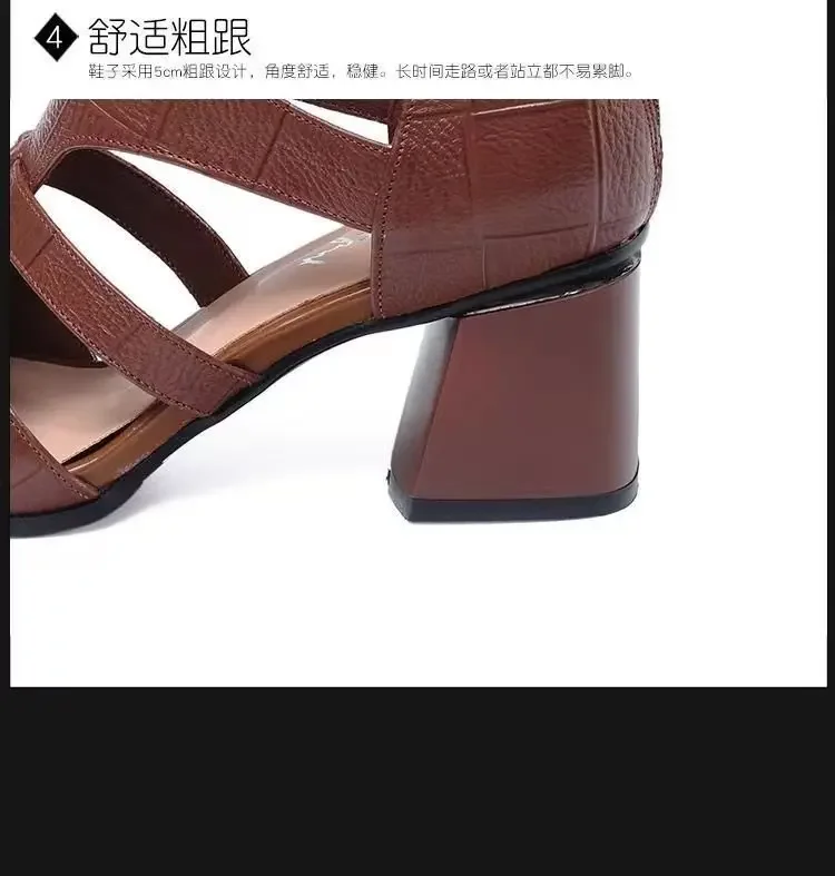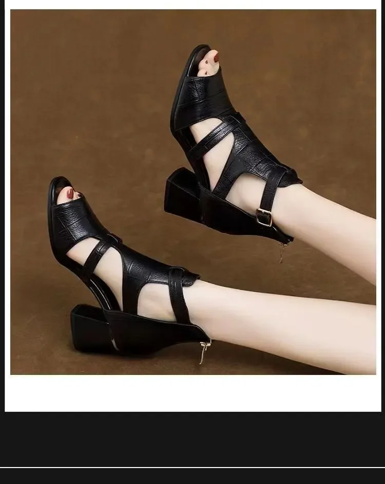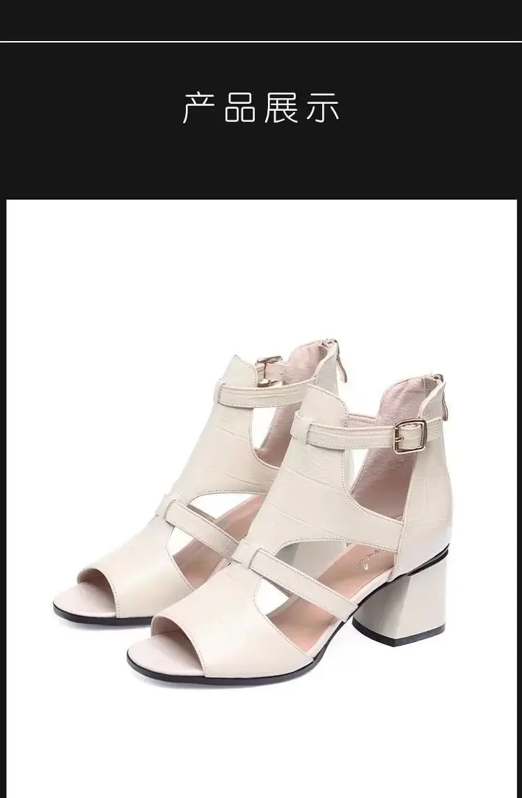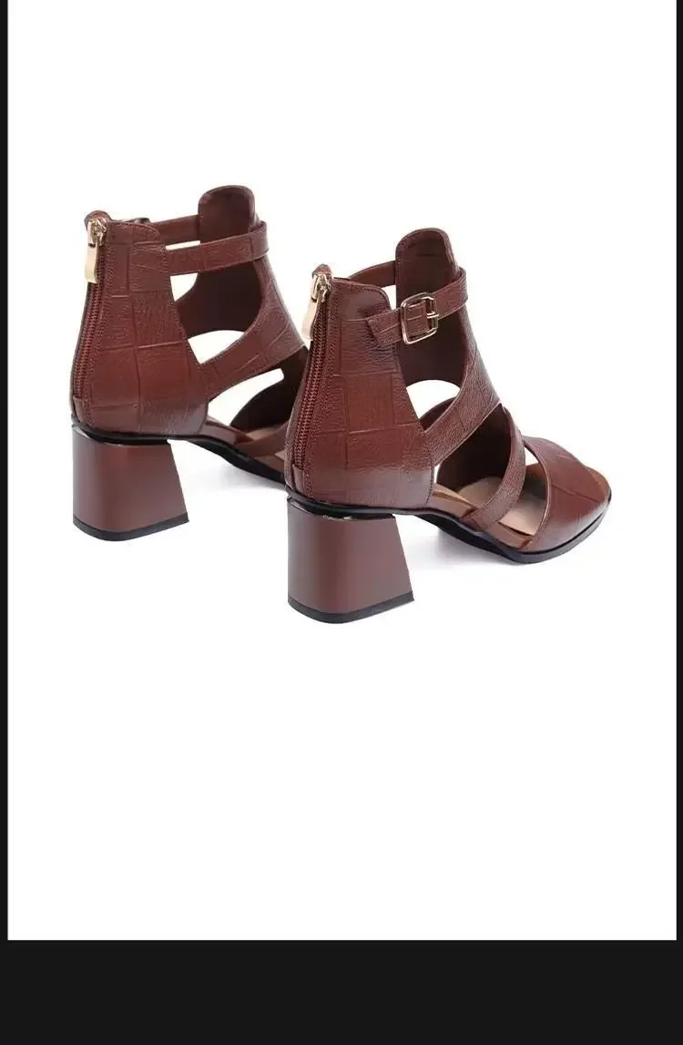 Sandalias de mujer Tacones altos gruesos Peep Toe Hollow Out Sandalias de estilo romano Hebilla Cremallera trasera Versátil Verano 2024