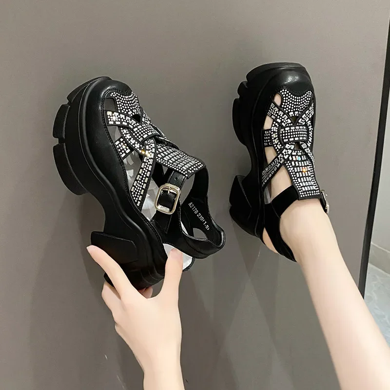 Sandalias de papá para mujer, novedad de verano 2021, zapatos de plataforma, Sandalias romanas deportivas con diamantes de agua, zapatos informales de suela blanda para exteriores, Sandalias