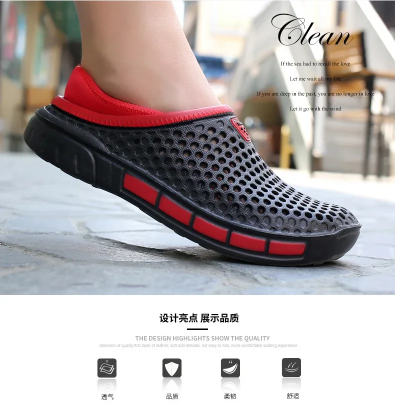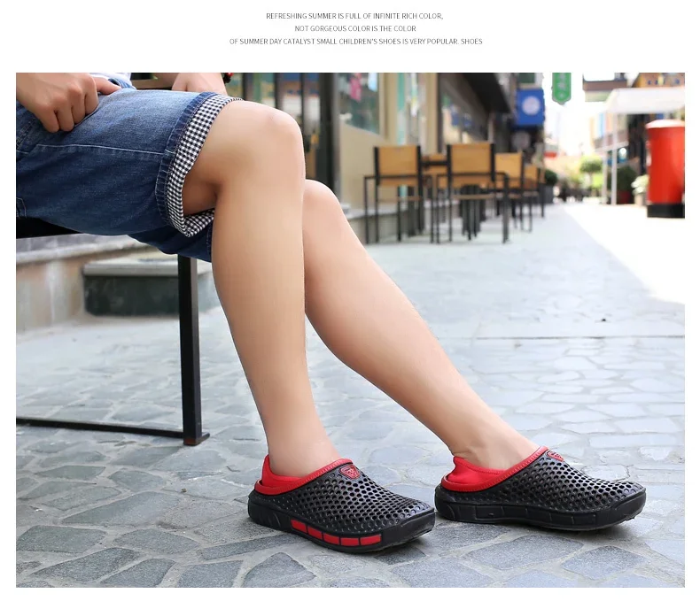 Sandalias de playa de verano para hombre, zapatos informales transpirables con agujeros, zuecos ligeros para el hogar y el jardín, zapatillas planas para hombre al aire libre