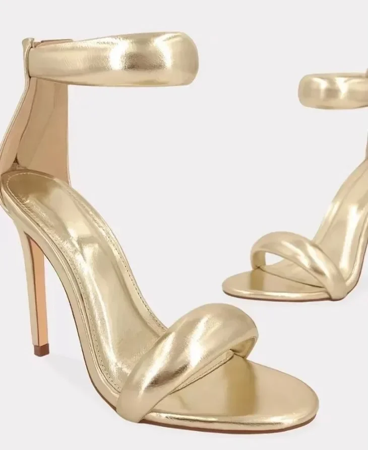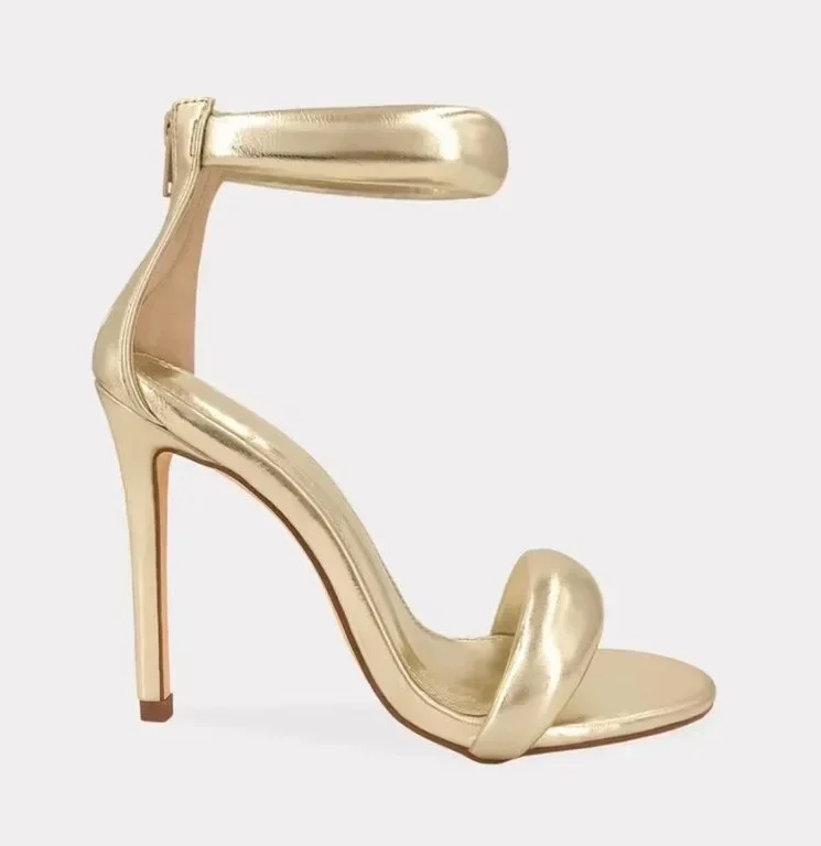 Sandalias de tacón alto fino para mujer, zapatos de boda dorados, calzado de banquete, estilo simple, marca de lujo, nuevo