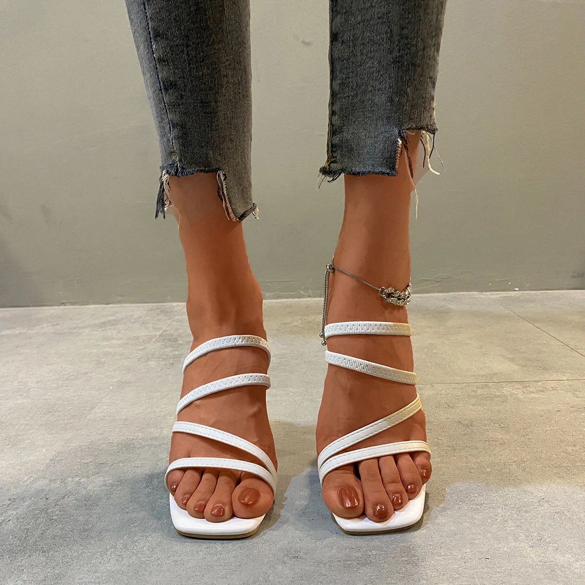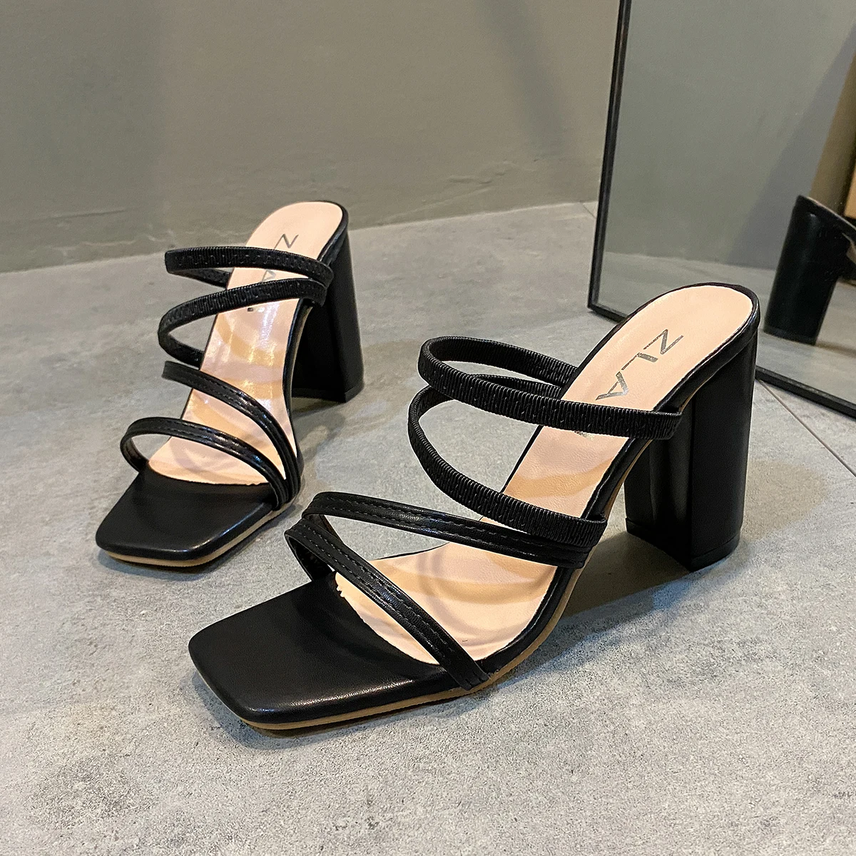 Sandalias de verano de lujo para mujer, zapatos de tacón alto de diseño de marca, a la moda, Color sólido Simple, zapatillas sexys de Punta abierta para exteriores, novedad de 2024