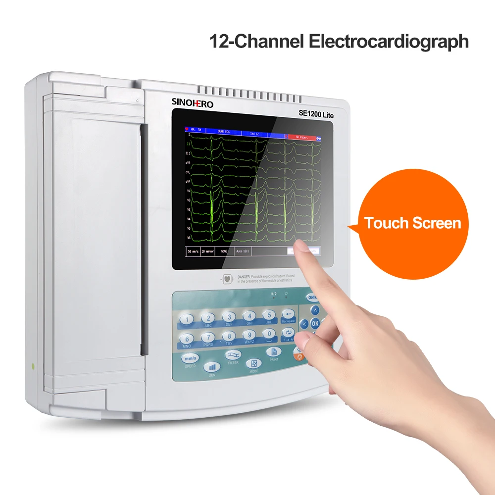 SE1200lite 12 canales 12 conductores electrocardiógrafo ECG máquina 8,4 "pantalla LCD táctil Monitor EKG con impresión térmica