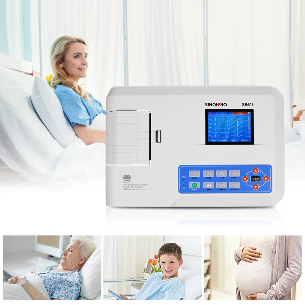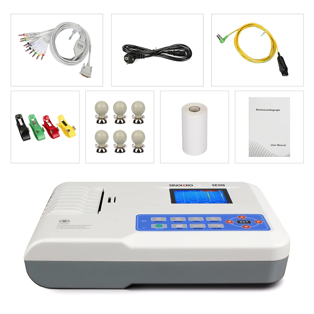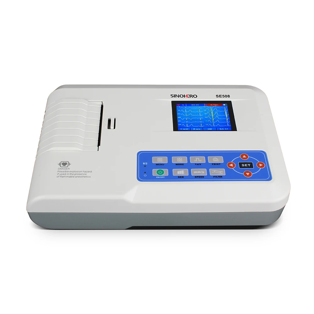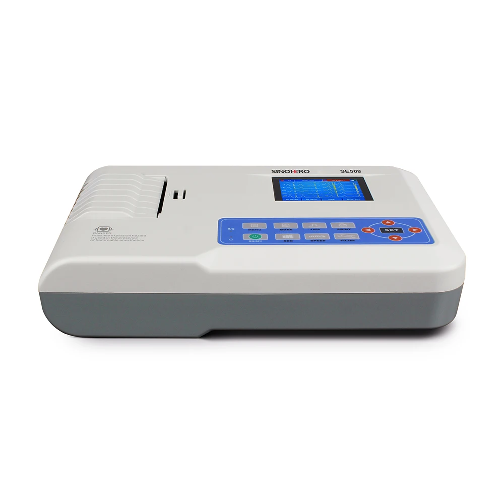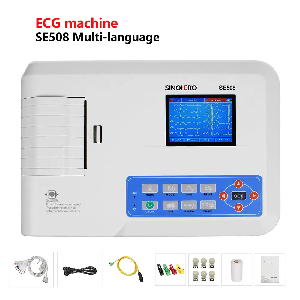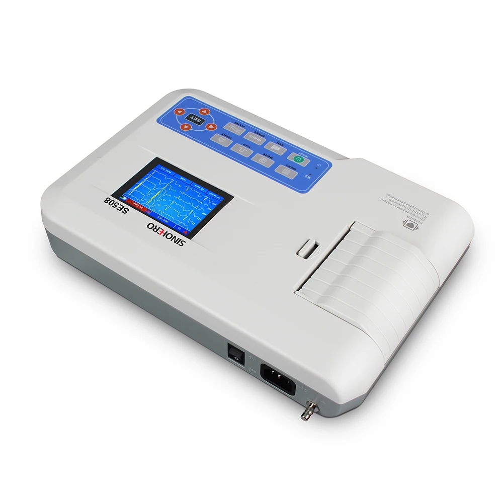 SE508 es un electrocardiógrafo que puede recopilar señales de ECG de 12 derivaciones e imprimir formas de onda mediante el sistema de impresión térmica.Cuenta con grabación y visualización de la forma de onda de ECG en modo AUTO/Manual, medición y diagnóstico automático de los parámetros de forma de onda de ECG, solicitando "Derivación apagada" y "Falta de papel", interfaz multilingüe, CA/CC, selección de cualquier derivación de ritmo, gestión de bases de datos de casos.