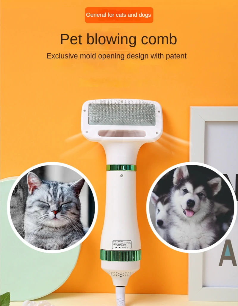 Secador de pelo para perros 2 en 1, secador de pelo silencioso para perros y peine, cepillo para el cuidado del gatito, peine para el pelo de gato, soplador de piel para cachorros, baja temperatura de ruido
