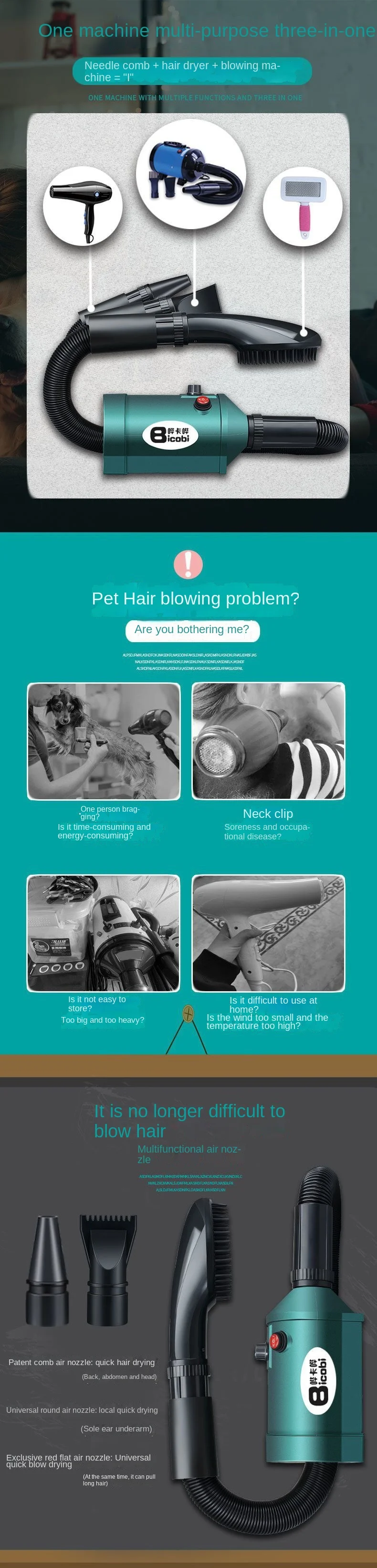 Secador de pelo eléctrico para perros, máquina de soplado de manguera de alta potencia, temperatura constante, suministros de viaje para cachorros, secador doméstico para mascotas