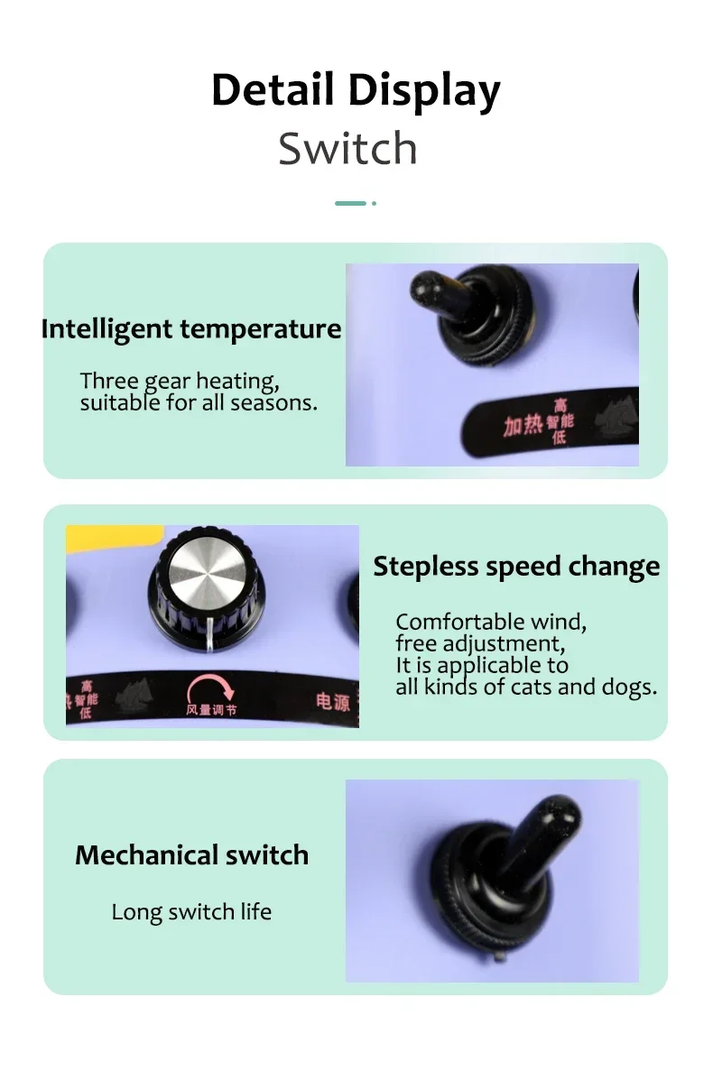 ¡Enviado con el enchufe incorrecto! Secador para mascotas bueno, pero no se puede ajustar el nivel de calor, el interruptor no hace nada.