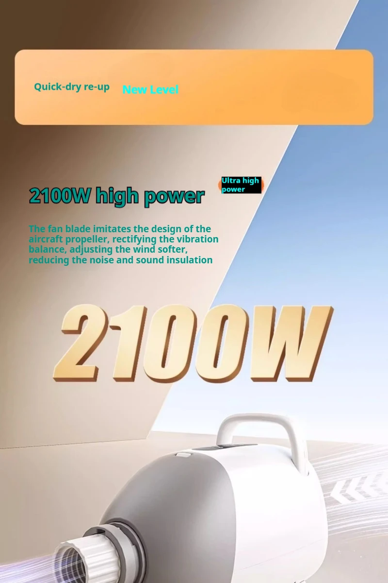 Salida de alta potencia: potencia de 2100 W, fuerte energía eólica, adecuada para mascotas de diferentes tamaños (gatos/perros pequeños de 8 a 10 minutos, perros medianos de 15 a 20 minutos, perros grandes de 25 a 40 minutos), cabello seco rápidamente, diga adiós a larga espera, eficiente y sin preocupaciones.