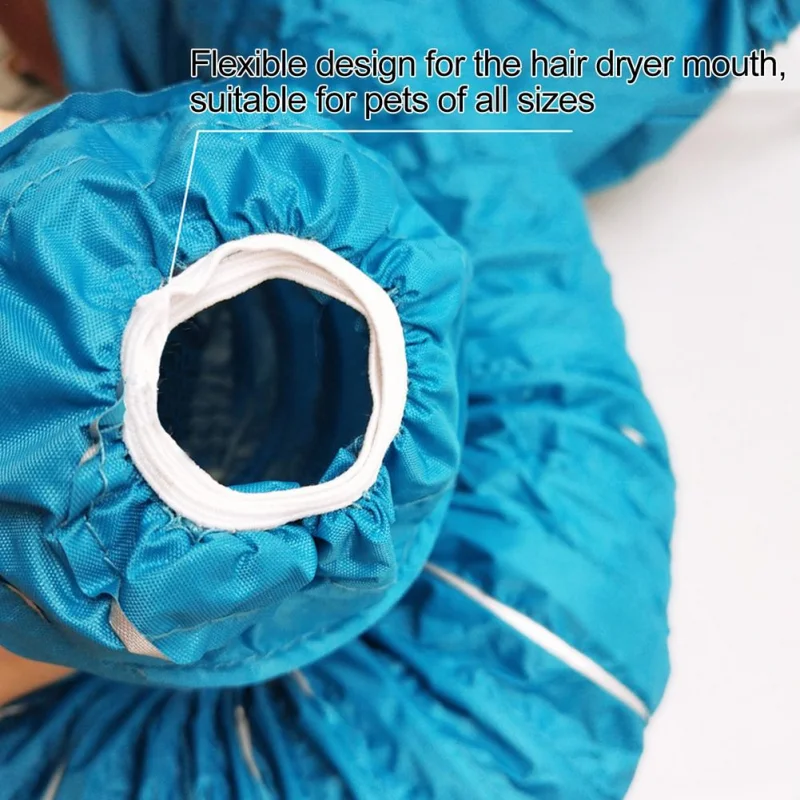 Después de que el perro se bañe, use una toalla absorbente para secar tanto como sea posible (sin goteo), primero coloque el perro.#x27; las extremidades de abajo hacia arriba y luego pegue el cierre de gancho y bucle trasero para apretar las correas del cuello y la cola.Conecte un secador de pelo al puerto de soplado, seleccione la velocidad máxima del viento a baja temperatura y el aire caliente que circula en la bolsa de secado puede secar rápidamente el pelo de perro.