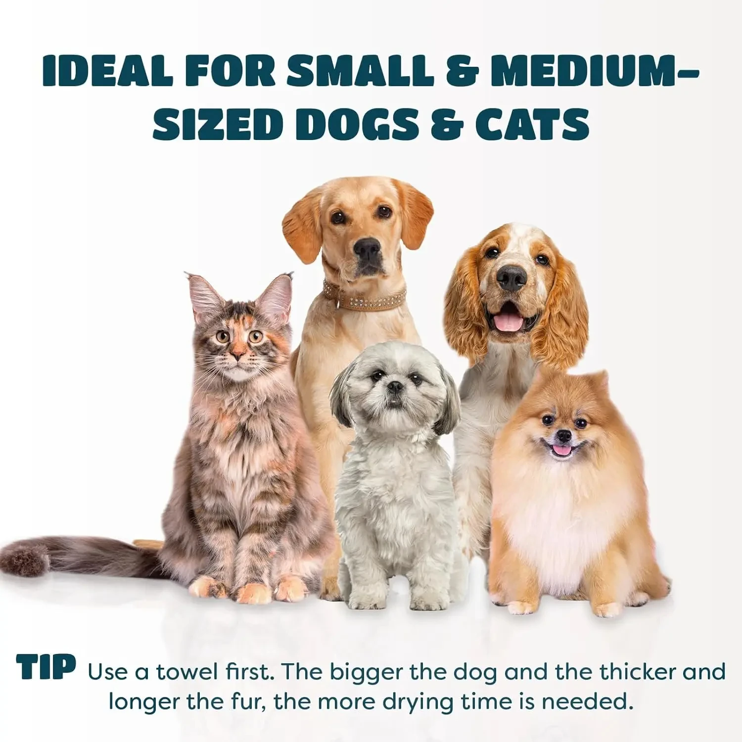 Personalice la experiencia de secado para satisfacer las necesidades de su mascota. Elija entre tres configuraciones de temperatura y flujo de aire para lograr el equilibrio perfecto entre comodidad y eficiencia de secado.