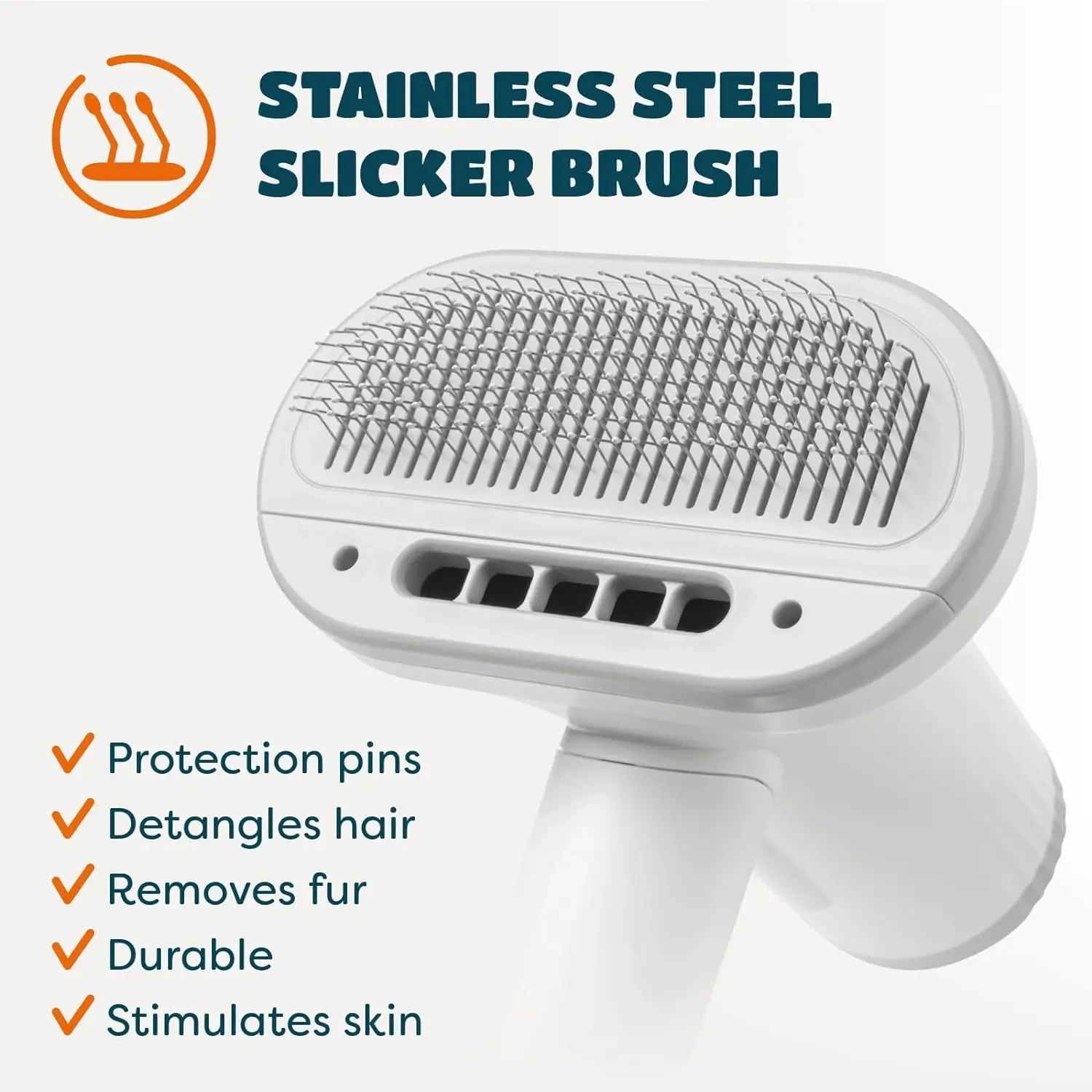 La limpieza después del aseo nunca ha sido tan fácil. Nuestro Botón de autolimpieza elimina la piel suelta y los escombros de la secadora sin esfuerzo, ahorrándole tiempo y esfuerzo. Mantenga su herramienta de aseo limpia y lista para el próximo uso. Consejos: Nuestros secadores de pelo para perros pueden no ser adecuados para perros grandes con abrigos gruesos, ya que esto puede llevar más tiempo que un secador de pelo grande.