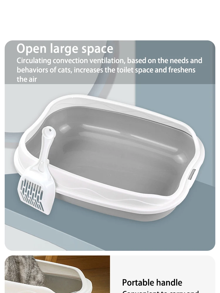 Características/Funciones: Diseño de pedal cóncavo y convexo para evitar salpicaduras de arena para gatos.Grandes aberturas de espacio, la circulación del aire reduce la reproducción detallada