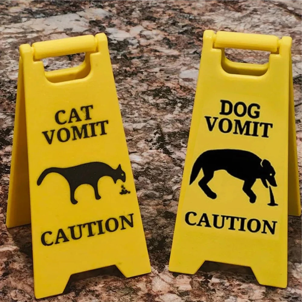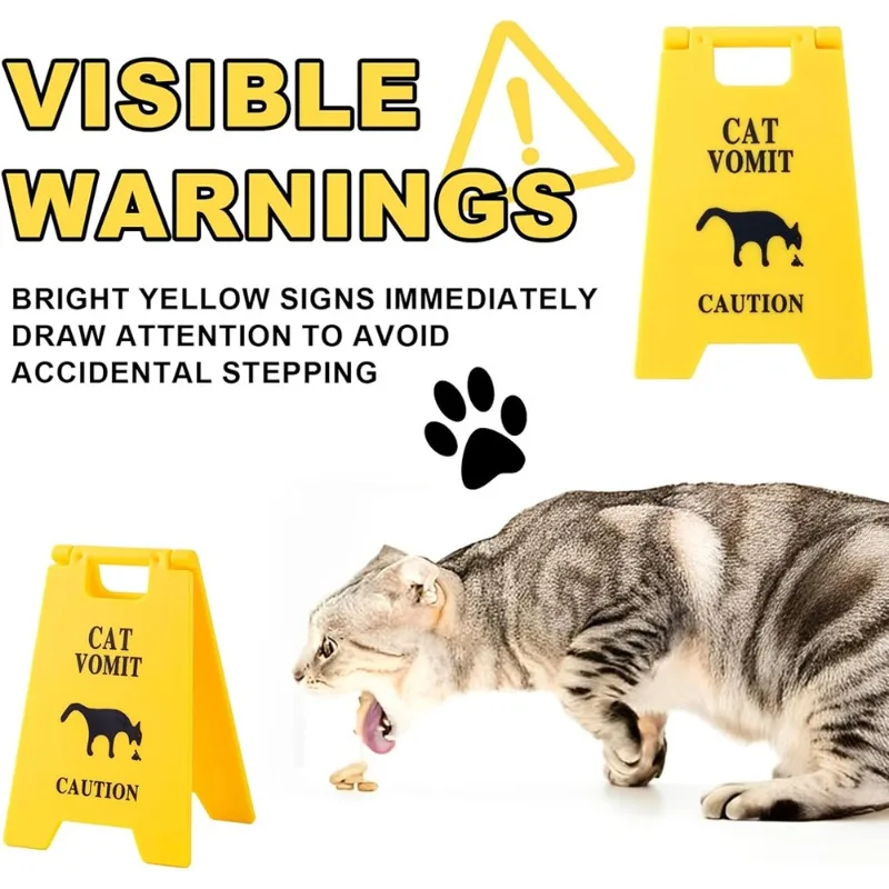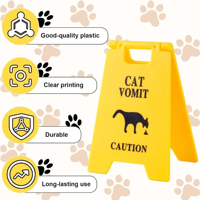 Señales antideslizantes amarillas para perros y gatos, letreros para vómito con ilustración de texto de precaución, decoración de suelo para propietario de mascotas, letrero de peligro transparente, decoración del hogar, 1 ud.