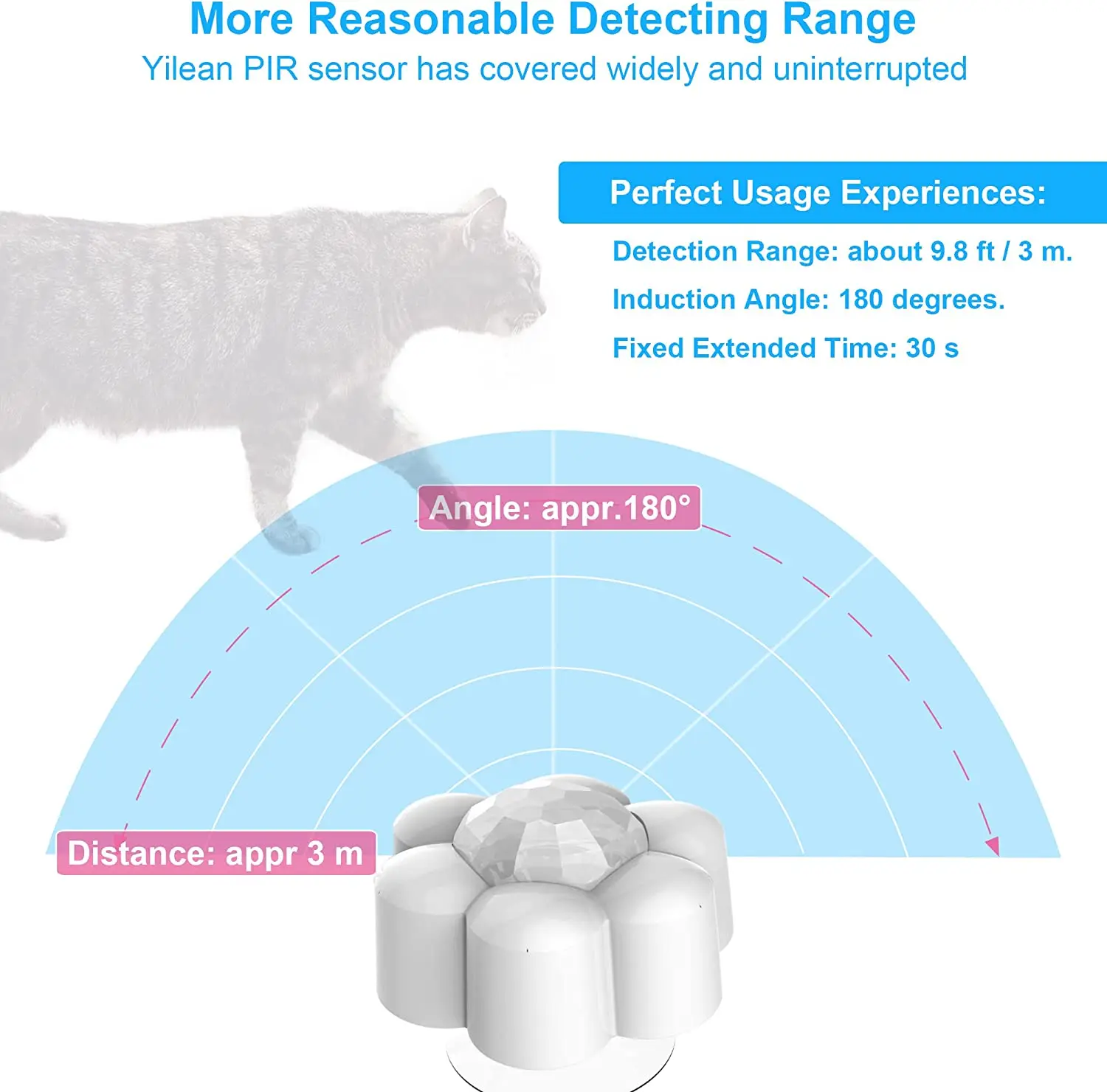 1.Encienda automáticamente el agua corriente cuando la mascota se acerca y párese automáticamente después de 30 segundos después de salir del rango de detección de 2 a 3 metros;