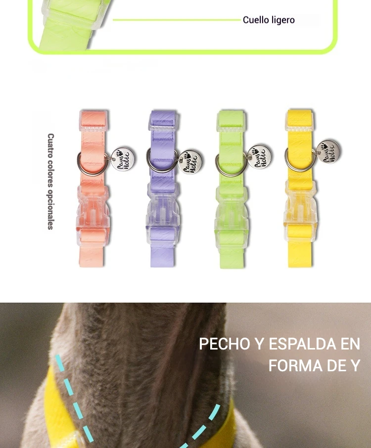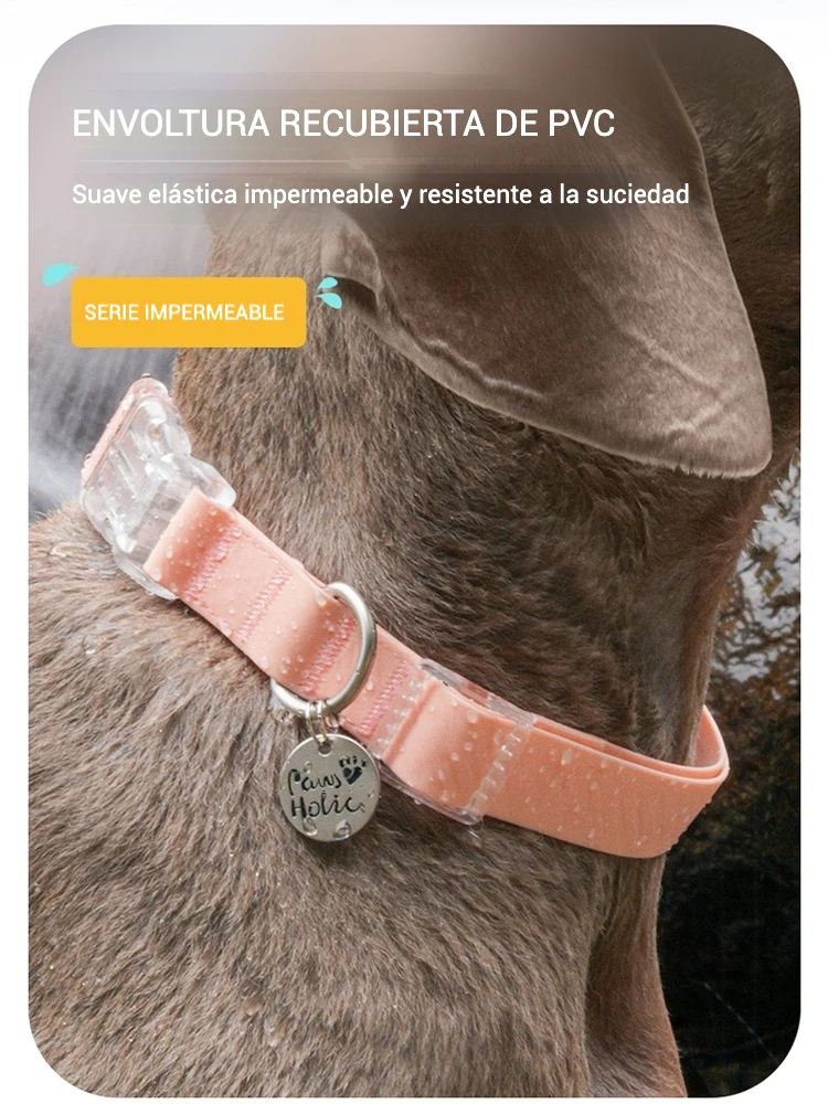 🌟1.Conjunto de collar y correa impermeable: Disponible en cuatro colores, con una capa exterior recubierta de PVC que es suave, elástica e impermeable. La capa interior tejida es resistente y duradera, resistente a la suciedad y al desgaste.