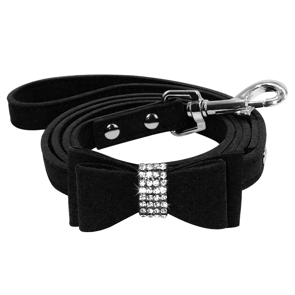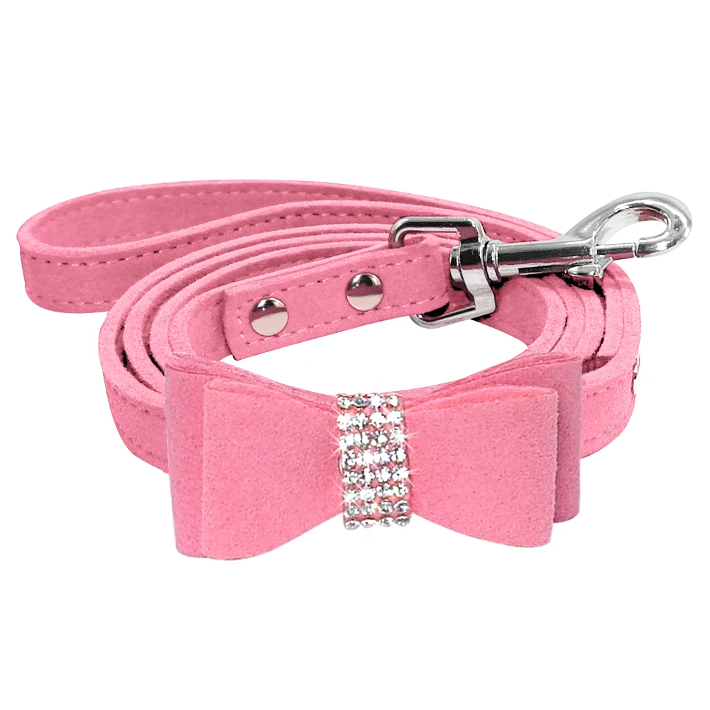 Correa de cuero para perros Seude, cuerda para perros pequeños y medianos, correas de plomo para caminar, accesorios con lazo de diamantes de imitación ostentosos, suministros para mascotas, color rosa