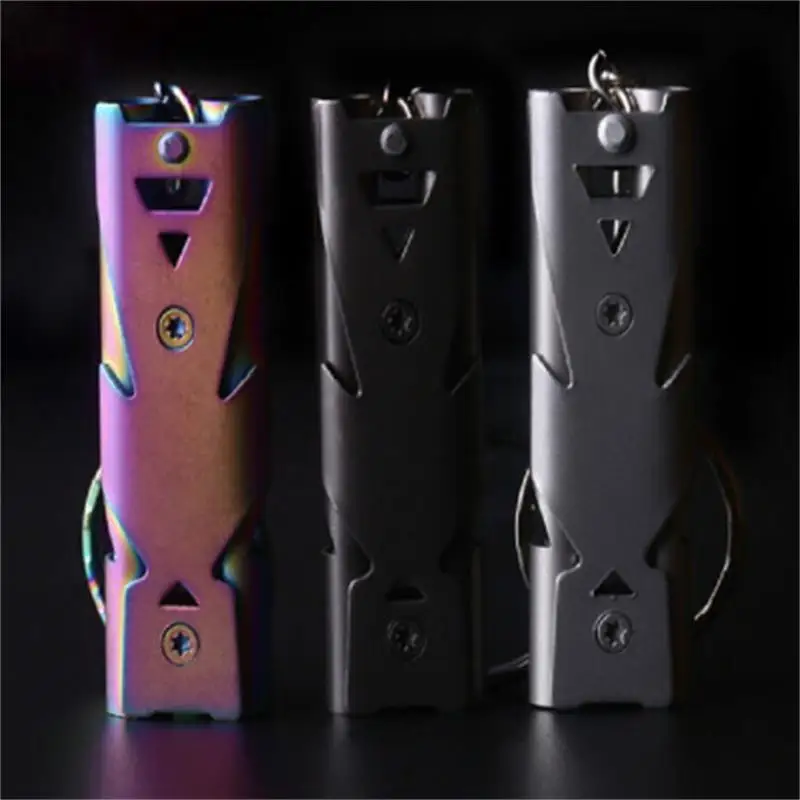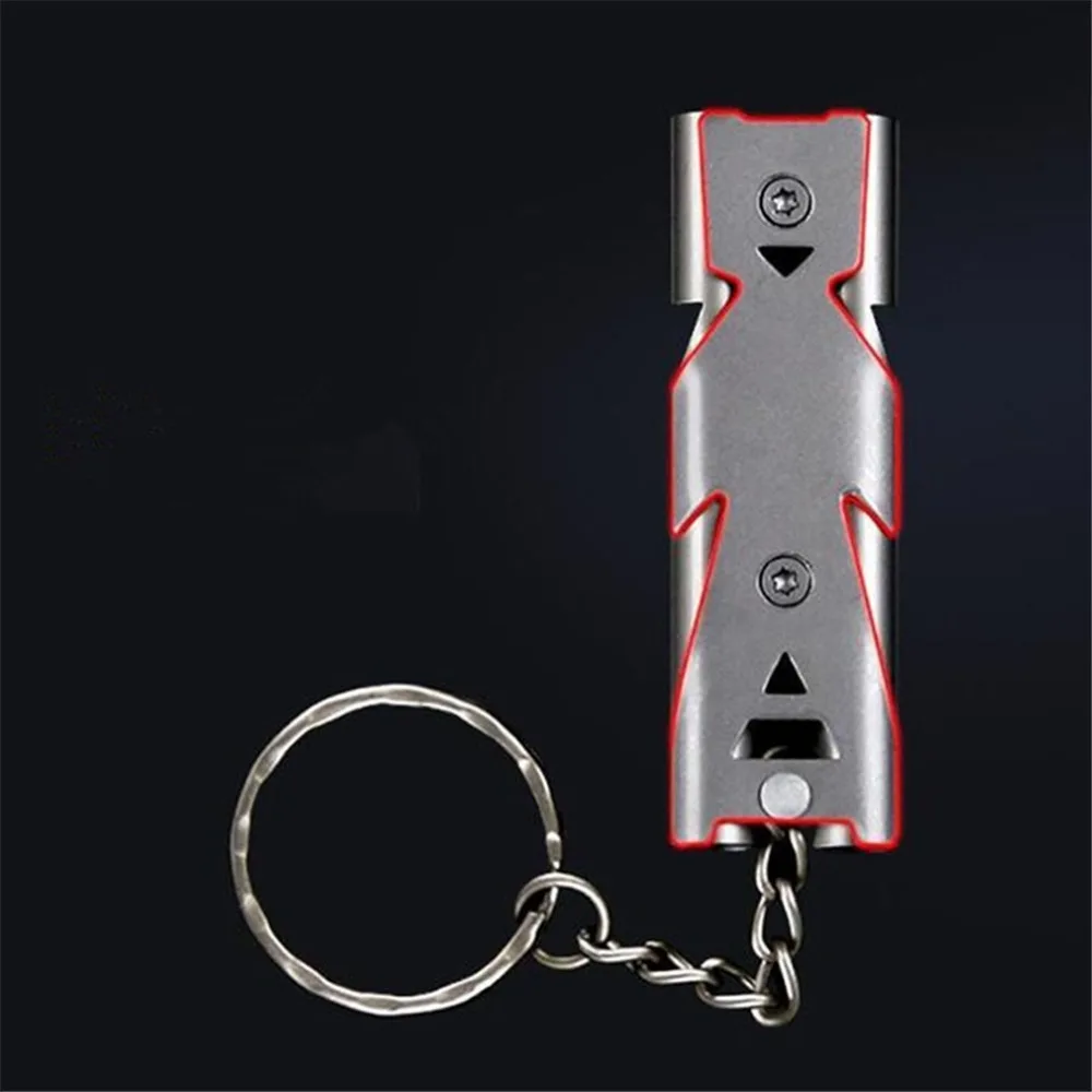Silbato de socorro ultrasónico para exteriores de acero inoxidable, doble tubo, productos de supervivencia de campo de alto Decibelio, entrenamiento de aves