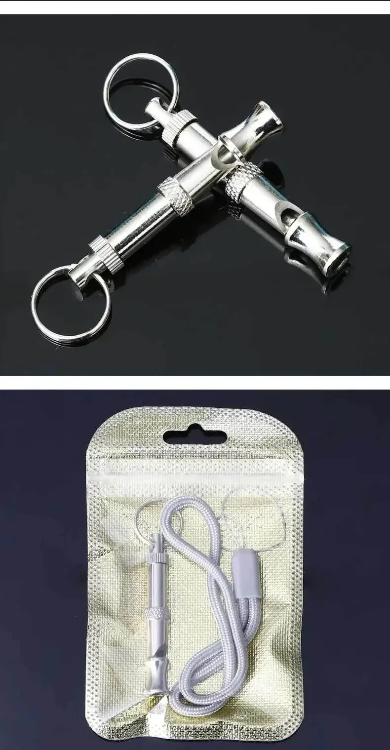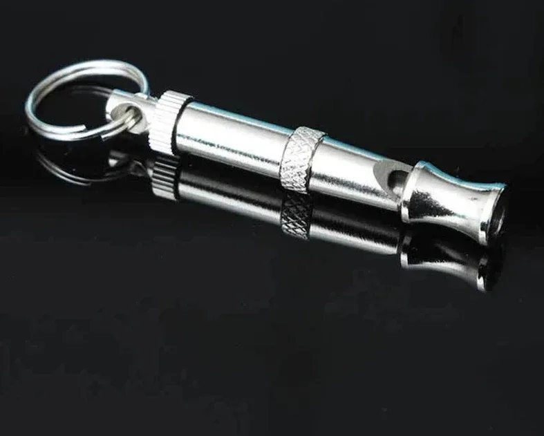 -Nombre del artículo: Silbato ultrasónico plateado para perro.
