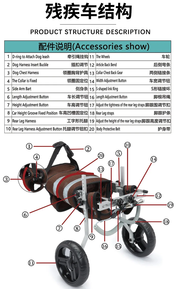 Silla de ruedas de aluminio para perros, patas traseras para mascotas, ayuda para la movilidad del coche para discapacitados, para mascotas pequeñas, extremidades traseras, carrito de silla de ruedas para perros