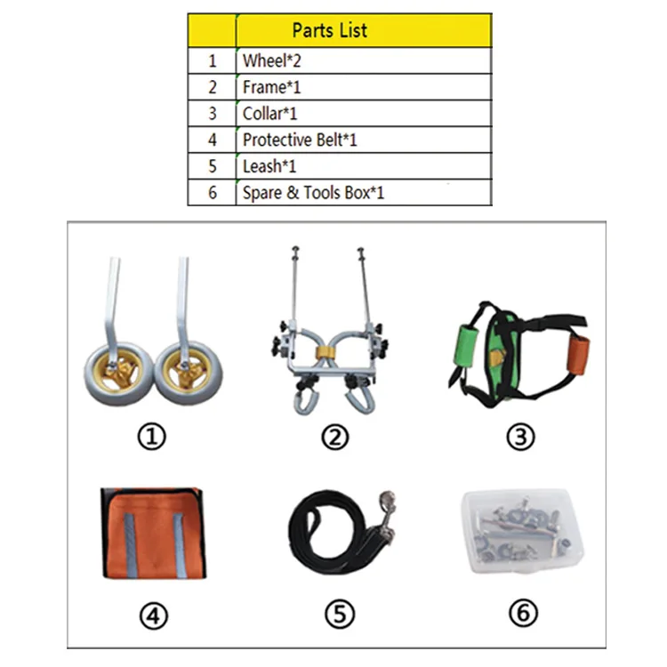 5. Asistente para caminar con mascotas: las mascotas pueden usar un carrito para ayudar a caminar o sostener completamente las piernas sin tener que sostenerlas.Su mascota debe tener fuerza normal en la parte delantera de las piernas para utilizar esta silla de ruedas.