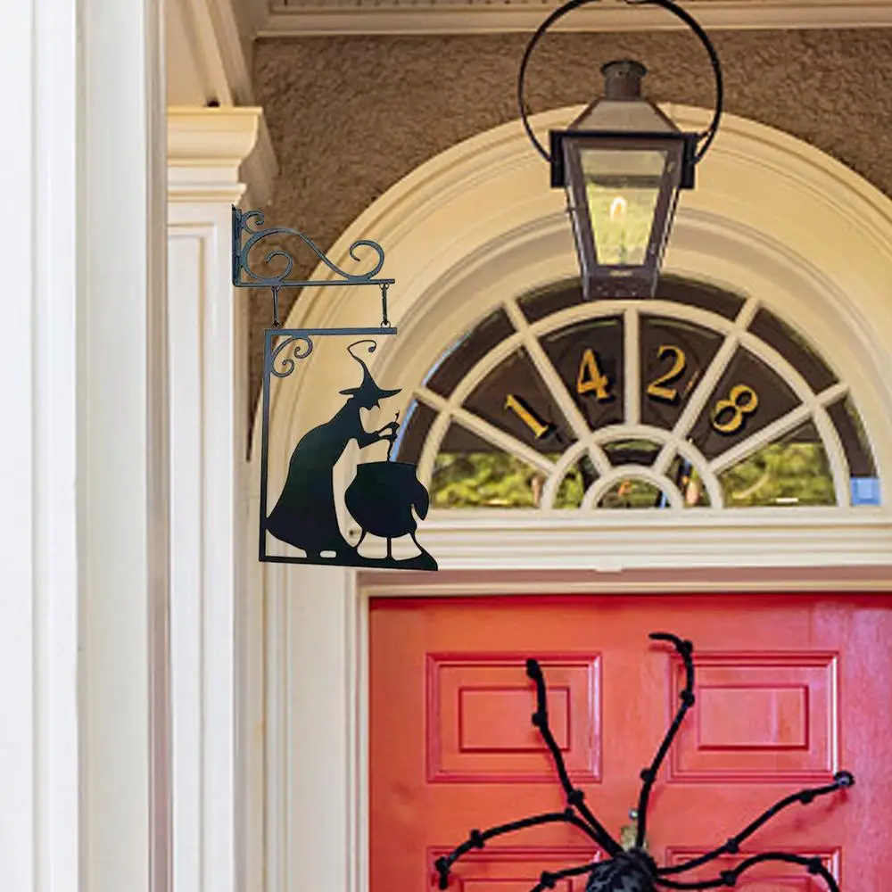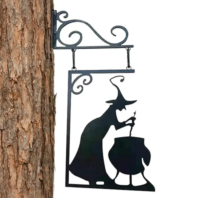 1.[Bruja negra y caldero] La silueta de metal de la bruja de Halloween está creando un fuerte ambiente festivo, lleno de elementos de Halloween, y diseñado con la escena de Brujas agitando el caldero.