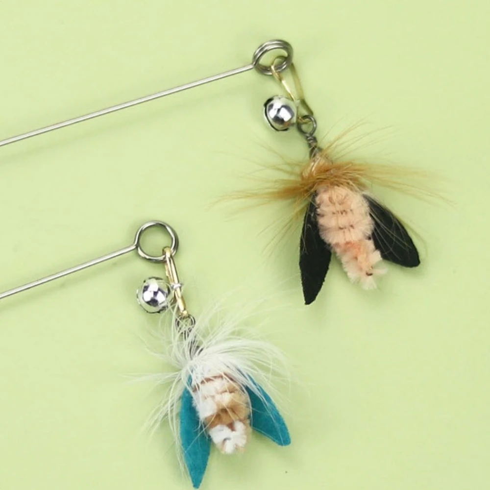 Simulación de formas de insectos, juguete para gatos con plumas, cabezal de repuesto, rompecabezas para gatos y gatitos, juguete para mascotas