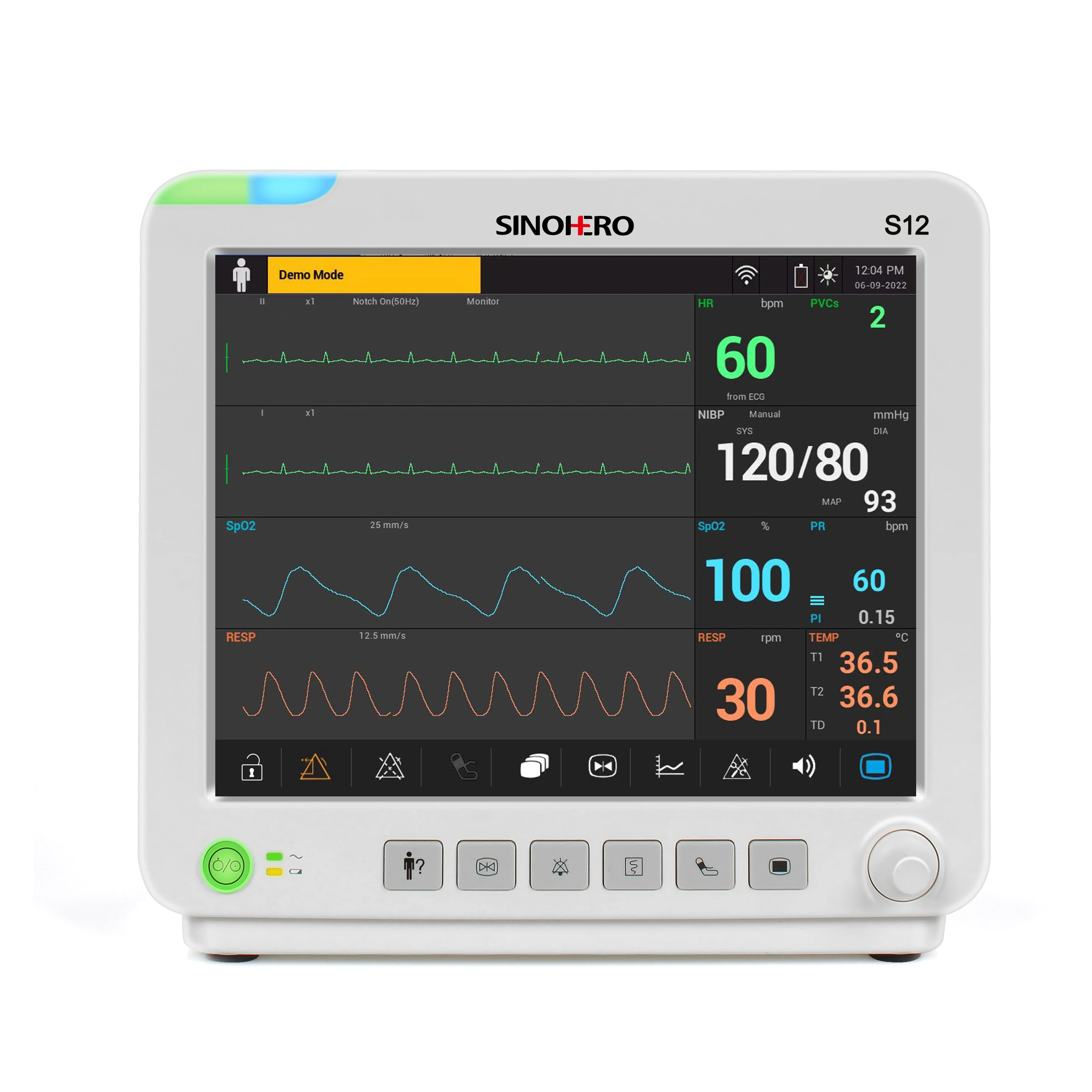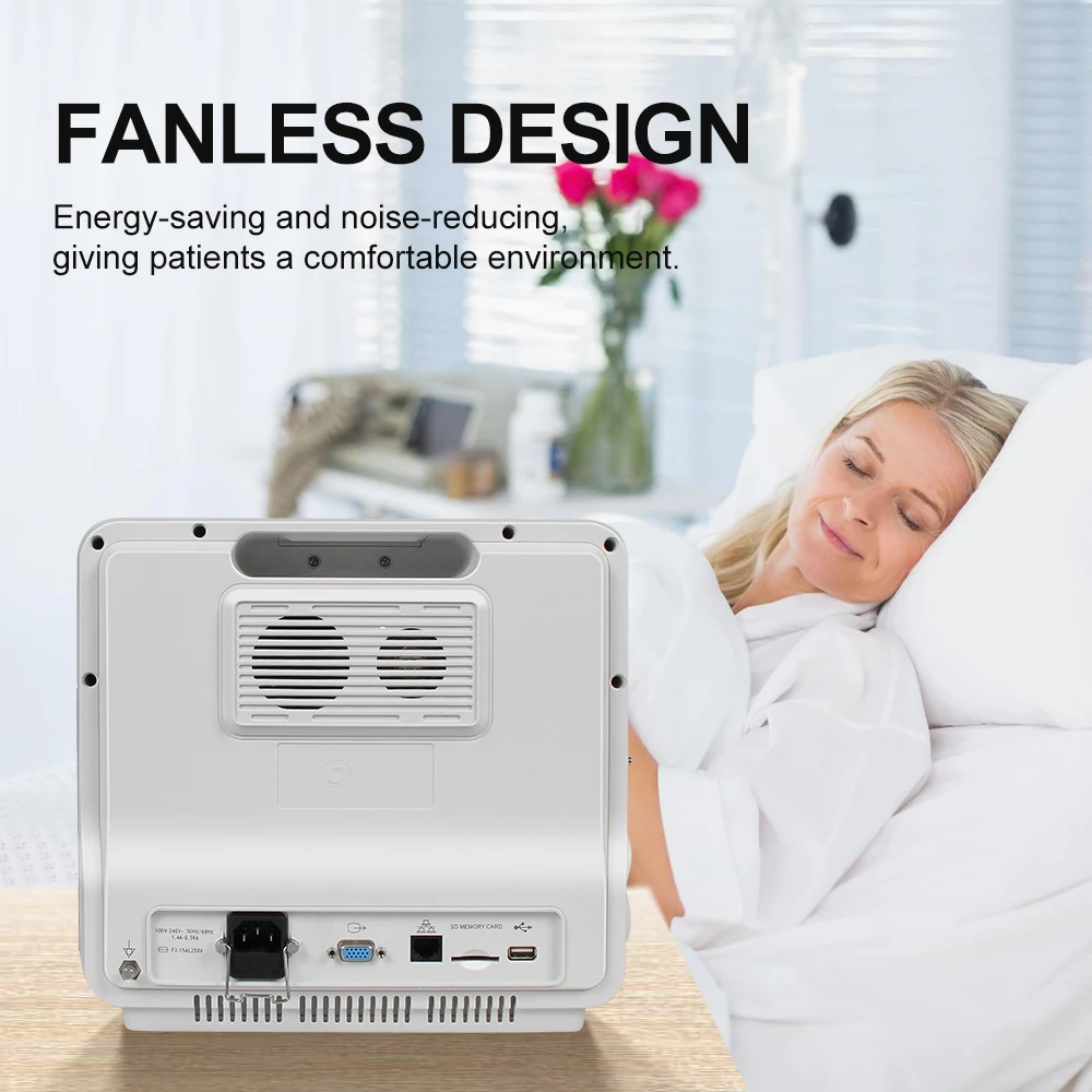 El monitor, alimentado por 100-240 V ~, 50/60 Hz, adopta una pantalla LCD TFT en color de 12,1 pulgadas que muestra la fecha y la forma de onda en tiempo real.Puede mostrar sincrónicamente formas de onda de ocho canales y parámetros de monitoreo completos equipados con una grabadora térmica opcional de 48 mm.El monitor se puede conectar al sistema de monitoreo central mediante una red cableada o inalámbrica para formar un sistema de monitoreo de red.