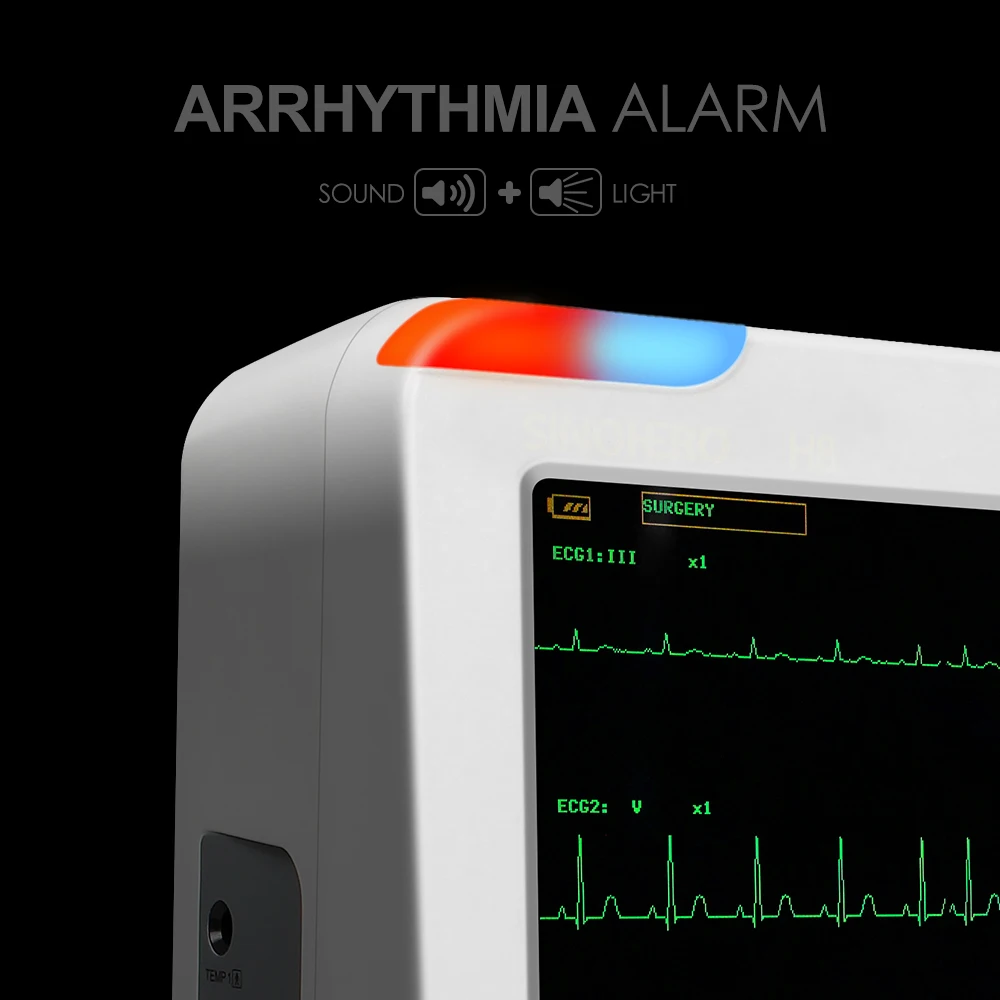Tiene abundantes funciones, como alarma sonora y visual, almacenamiento y salida de datos de tendencias, medición de NIBP, marcado de eventos de alarma.