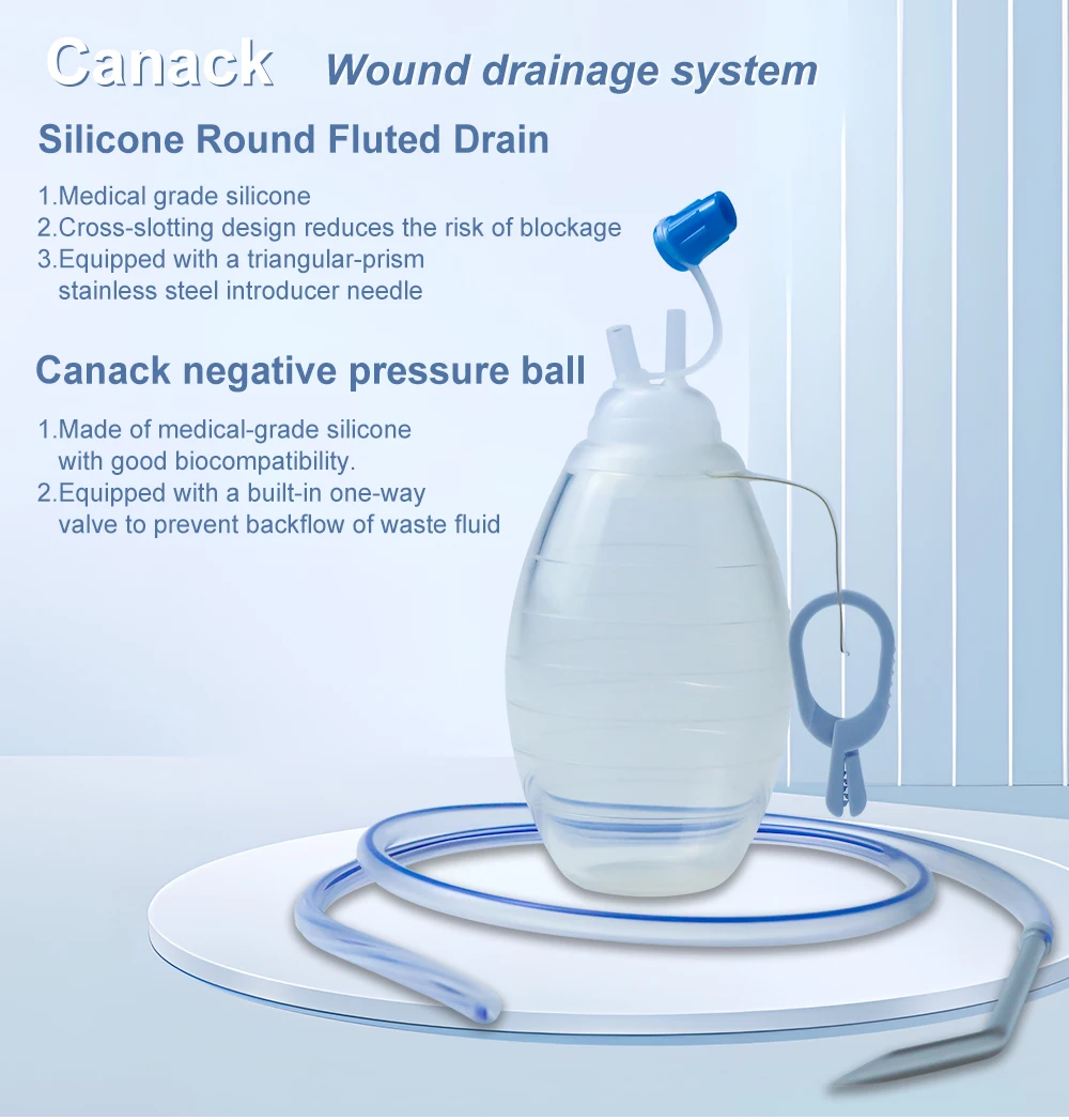 Sistema de drenaje, bola médica de silicona de presión negativa, tubo de drenaje estriado redondo, equipo veterinario, instrumentos quirúrgicos para mascotas
