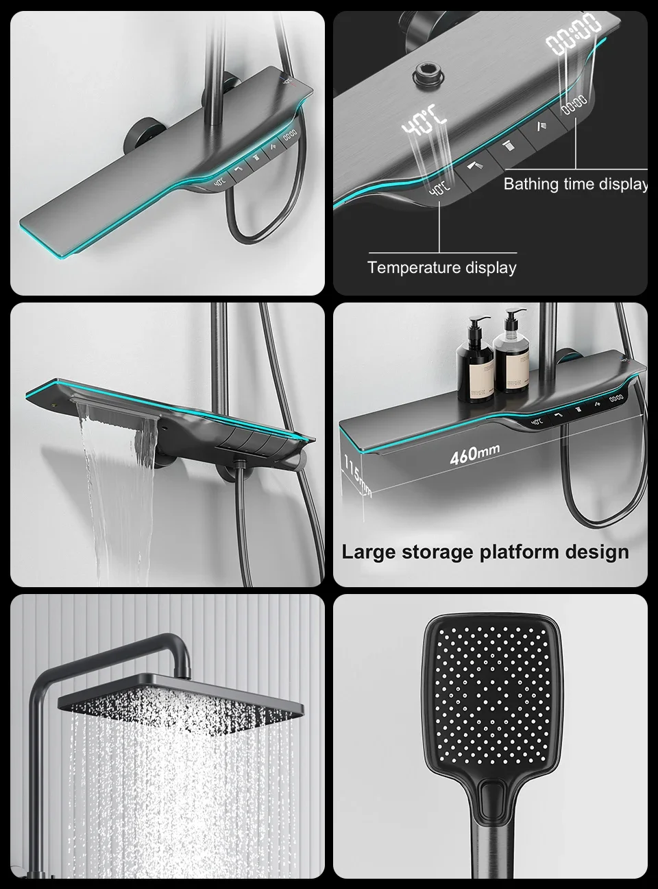 【 3 Salidas de Agua】 Las teclas del piano se controlan de forma independiente, rociador superior/Manual/grifo de bañera, cada salida de agua tiene un interruptor correspondiente, las funciones clave están claramente marcadas.