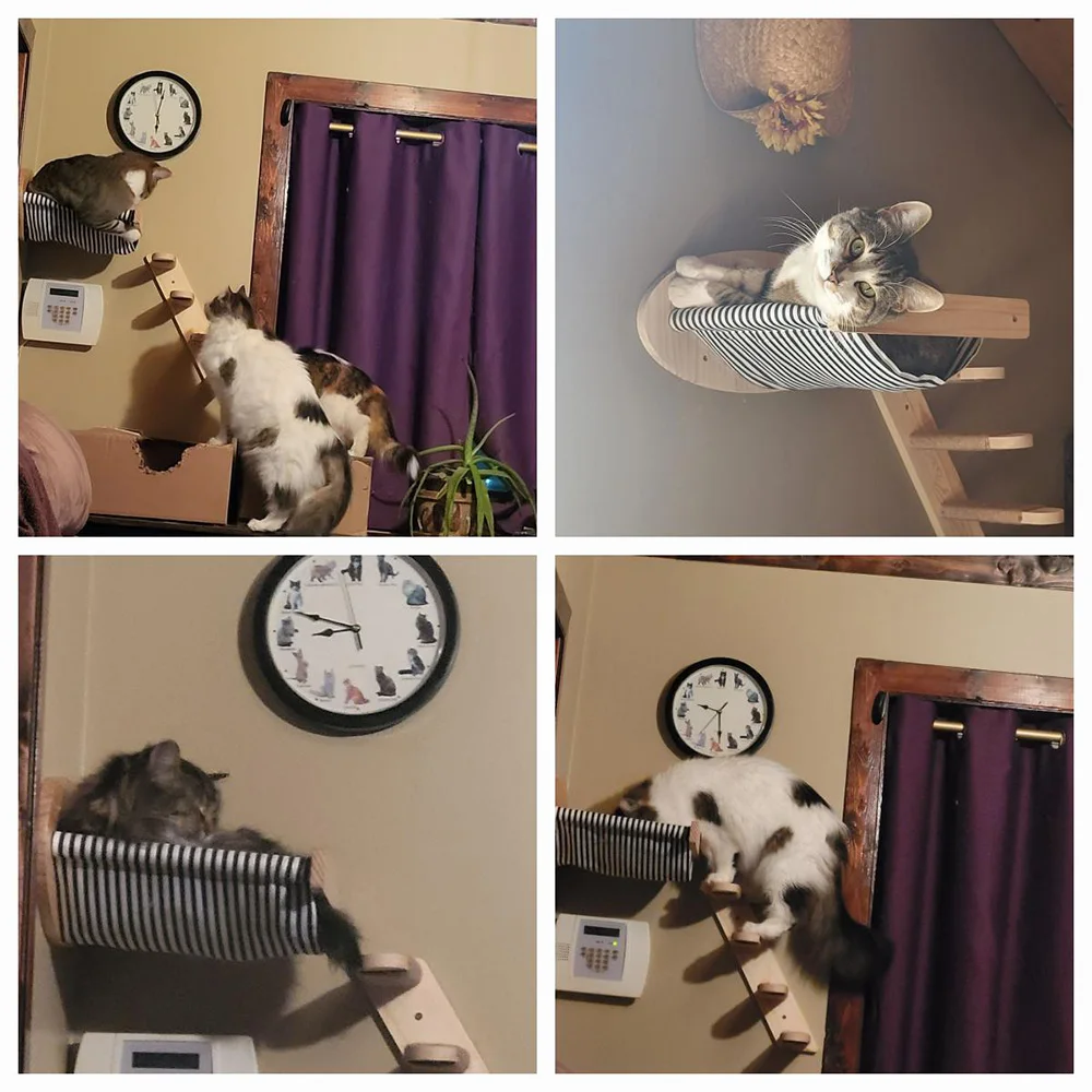 Los estantes de pared para gatos se adaptan al hábito de los gatos de escalar, aumentan el ejercicio y reduciendo la posibilidad de obesidad, lo que es bueno para la salud.Además, le da a los gatos espacio para escalar y evitar estropear la casa.