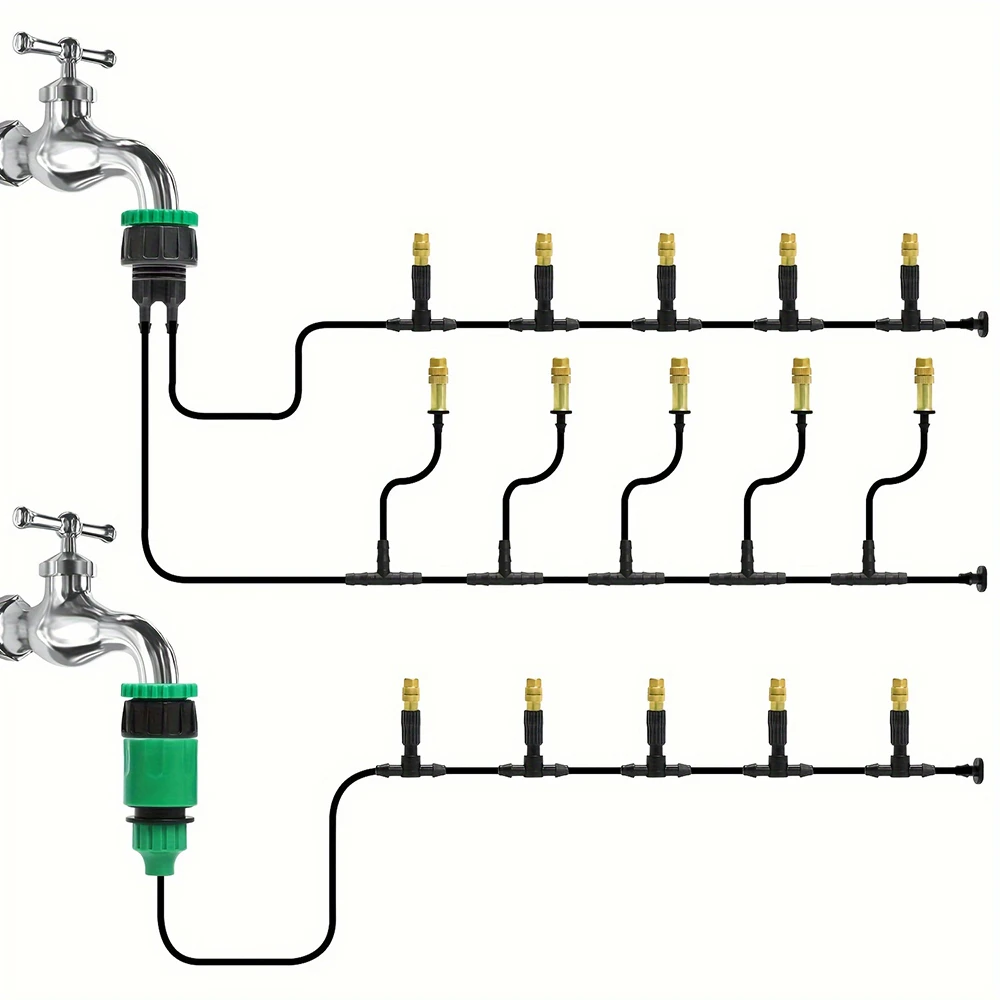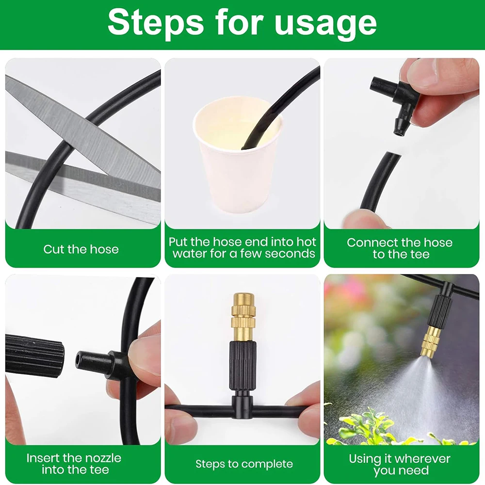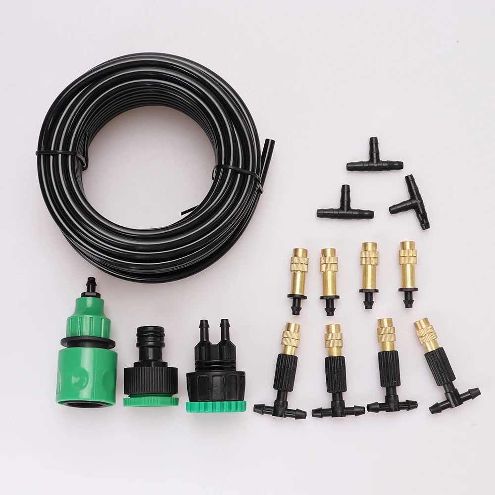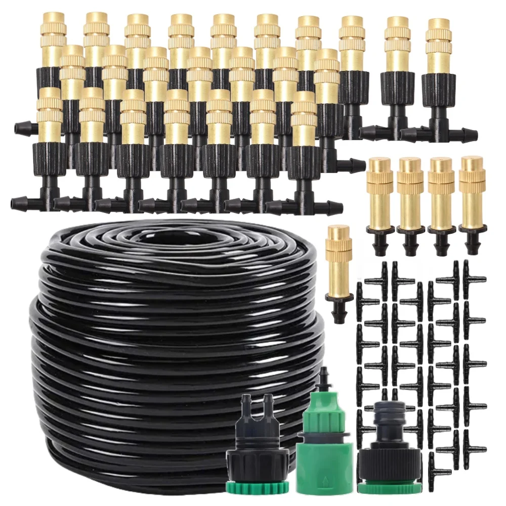 Sistema de refrigeración por nebulización de 5M-30M, riego de jardín, boquillas atomizadoras de latón de 1/4 pulgadas, manguera de 4/7mm para invernadero de Patio al aire libre