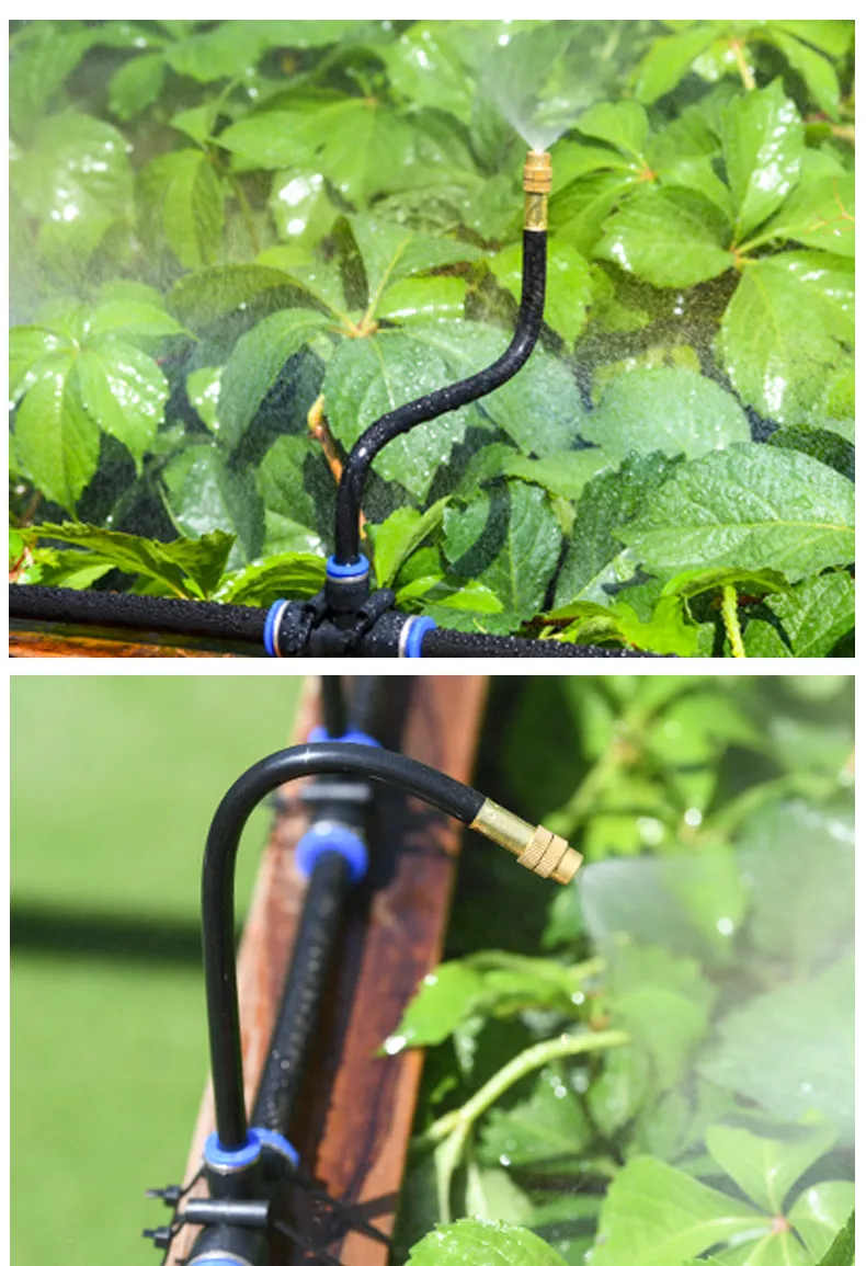 Este sistema de riego para jardín tiene 20 tubos de boquilla de cobre flexibles. El tubo de boquilla de metal incorporado se puede doblar 360 ° y fijado en cualquier ángulo según sus necesidades, proporcionando un riego preciso. Este sistema de riego de jardín es muy flexible de usar.