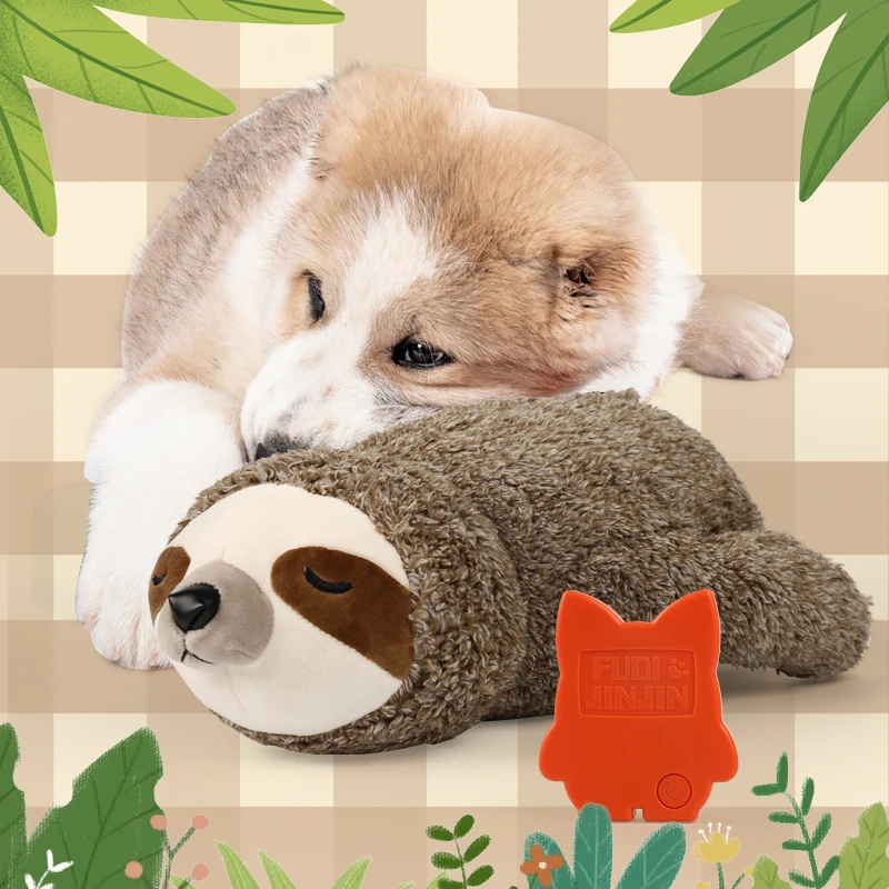 One day, in a pet store not too far from the town center, a young and innovative shop owner was brainstorming new ideas. Hearing about the calming effects of a sloth's laid-back personality, he decided to incorporate it into a new line of plush toys.But here came the challenge: How to get pets to accept the heartbeat function of the sloth toy? The owner came up with a plan – he would use his own dog as a test subject.