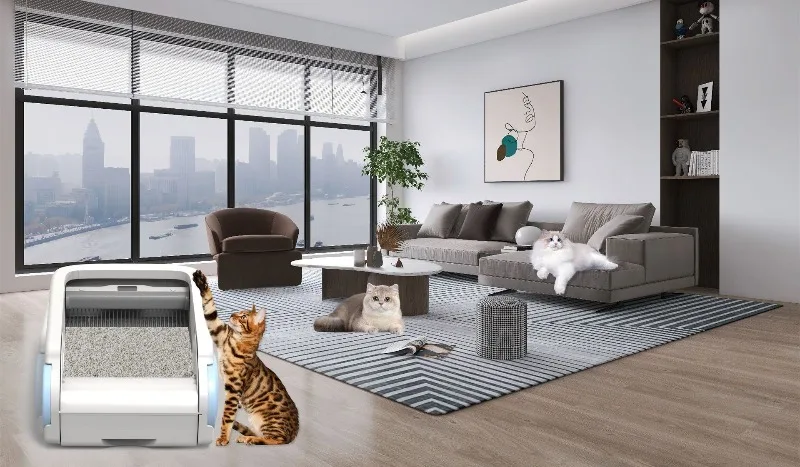Smart Cat Litter Box Automatic Cats Sandbox Safety Self-cleaning Cats Kitten Litter Tray Stainless Steel Base Pet Kittens Toilet