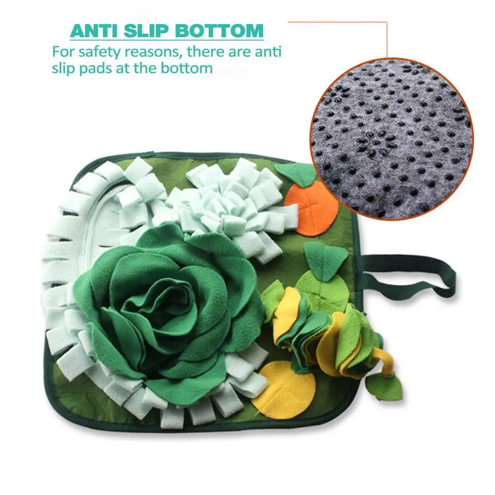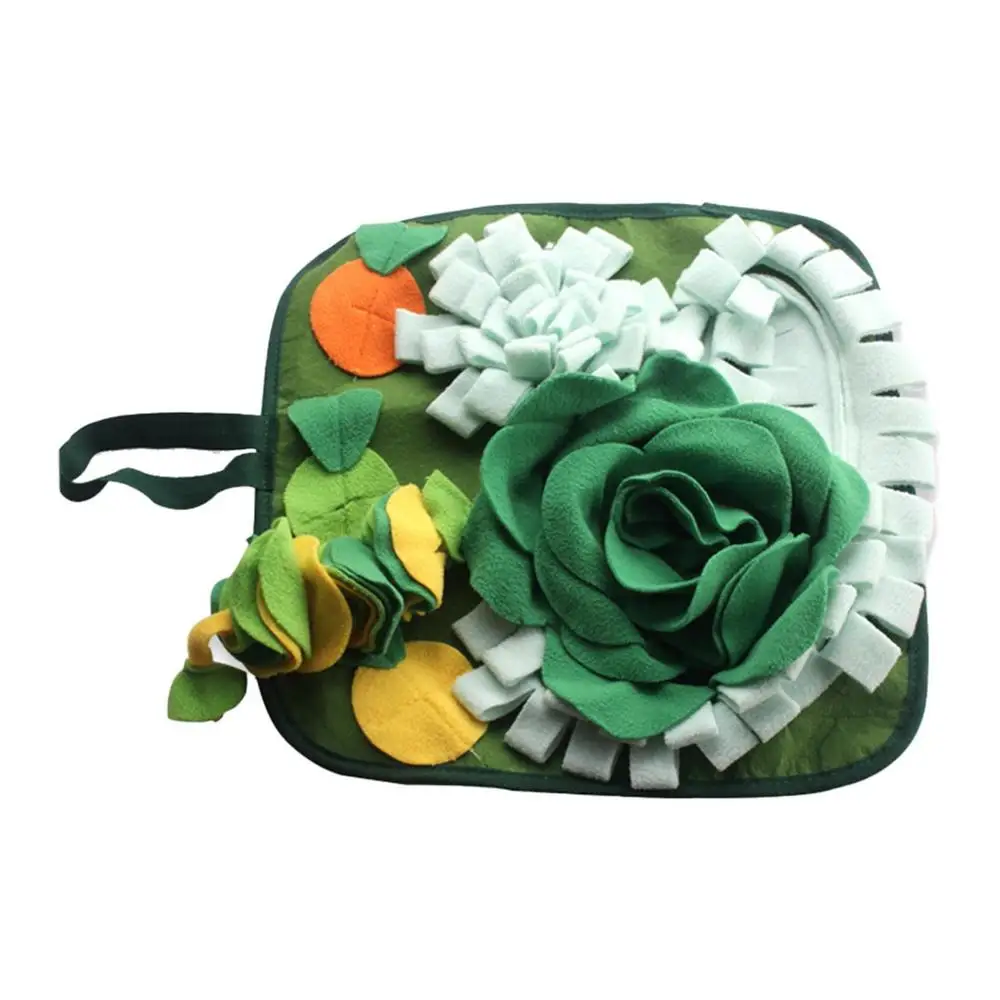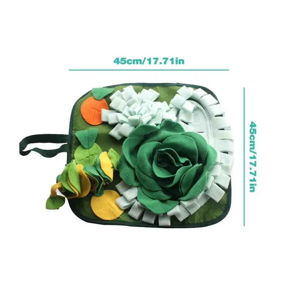 2. Divertido juego de comida lenta: Esta alfombrilla para olfatear perros simula un entorno de alimentación real al aire libre, donde su perro puede pasar más tiempo buscando comida en los pétalos y las hojas. Esto ayuda a mejorar su sistema digestivo, evitar que se aburran y mejorar su salud física y mental.