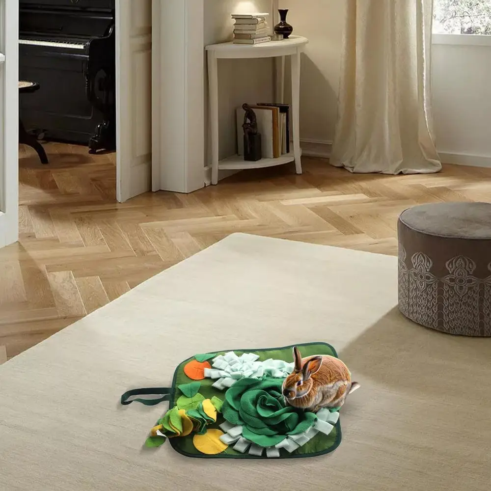 ¿Tu perro se aburre o se angustia en casa? Pruebe esta alfombra de alimentación de conejos que ayuda a los perros con el estrés simulando un ambiente de alimentación al aire libre real. A su perro le encantará olfatear y cavar para colocar las golosinas en la tela suave y duradera. La alfombrilla es segura y fácil de limpiar, y puede atar las cuerdas de la alfombrilla a los muebles para evitar resbalones. Adecuado para todos los perros, Esta alfombrilla mantendrá a tu amigo peludo feliz y satisfecho.