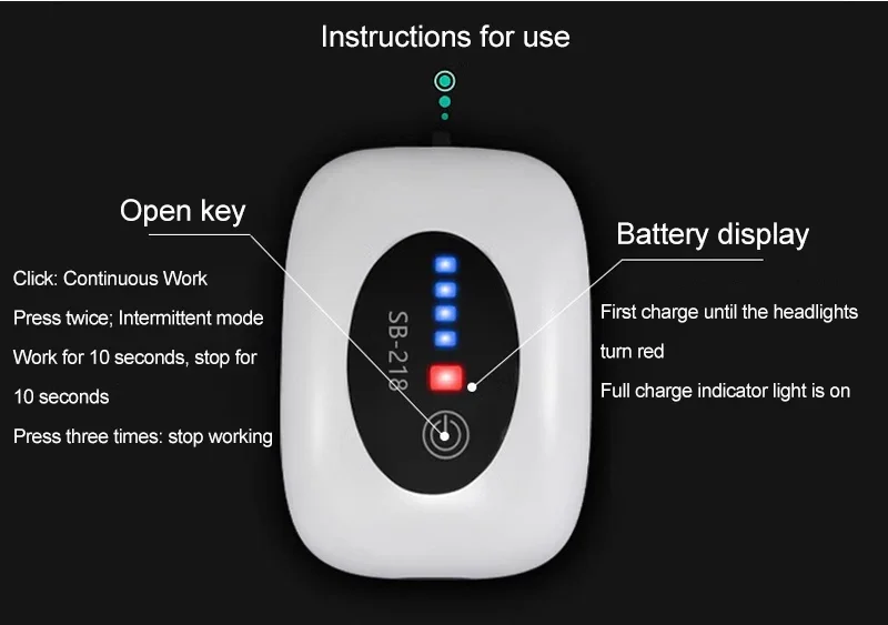 4. Cuando el producto está en estado de apagado o carga, presione ligeramente para entrar en el estado intermitente y la luz indicadora intermitente parpadea (en el modo intermitente: funciona durante 10 segundos, para 10 segundos).