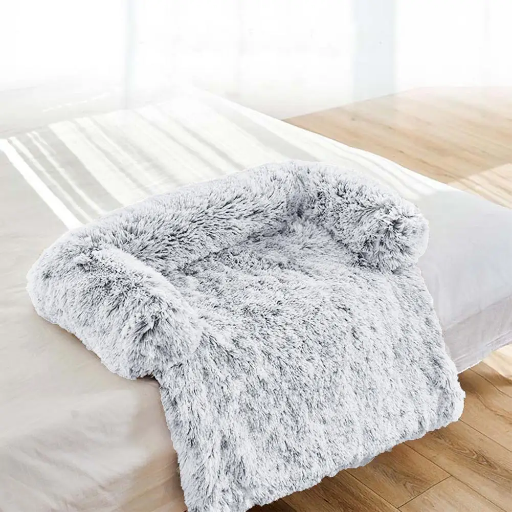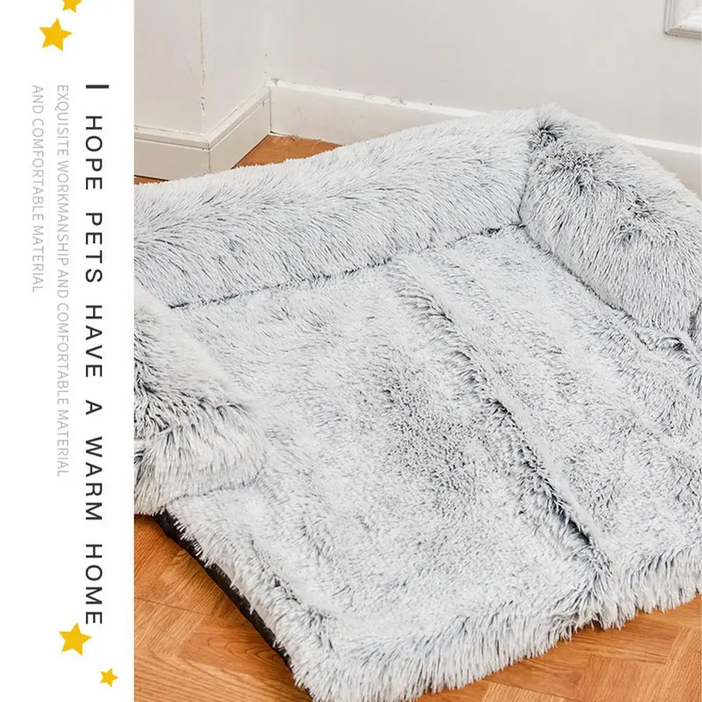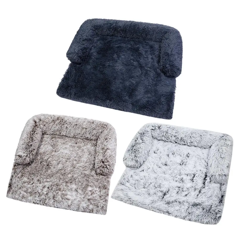 Sofá de cama para perro, cama calmante para mascotas, nido cálido, perrera, alfombrilla protectora de muebles suaves, cojín de cama para gato, funda de Manta larga de felpa
