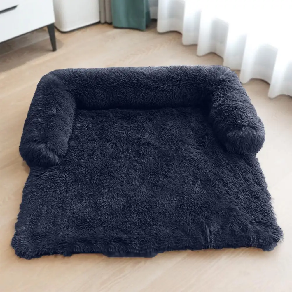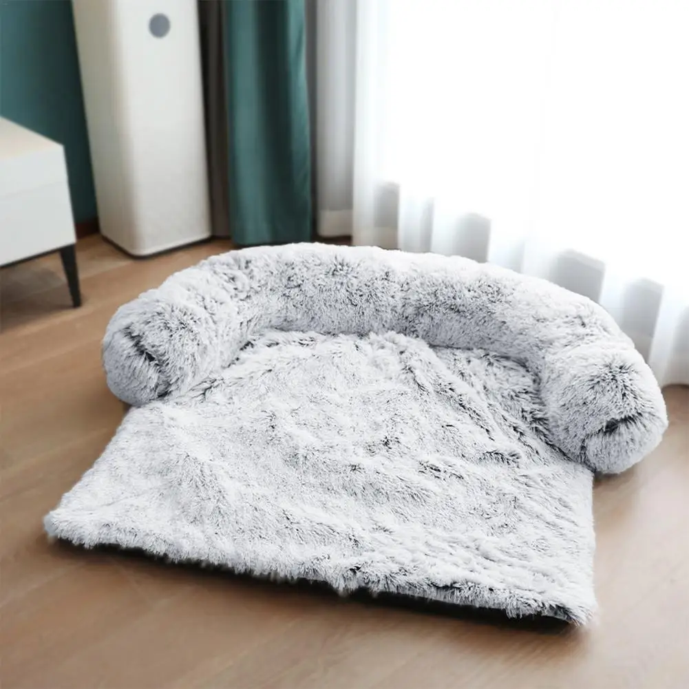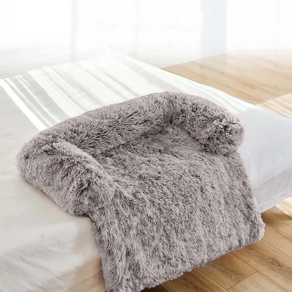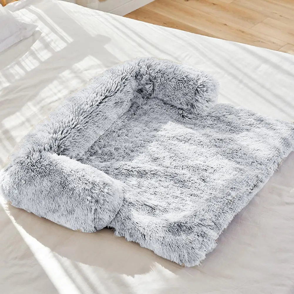 Sofá de cama para perro, cama calmante para mascotas, nido cálido, perrera, alfombrilla protectora de muebles suaves, cojín de cama para gato, funda de Manta larga de felpa