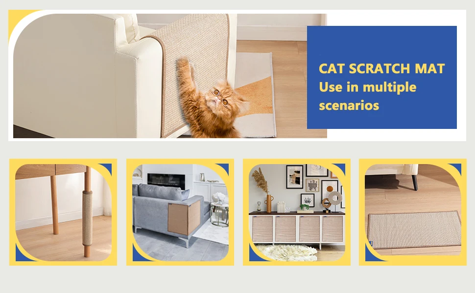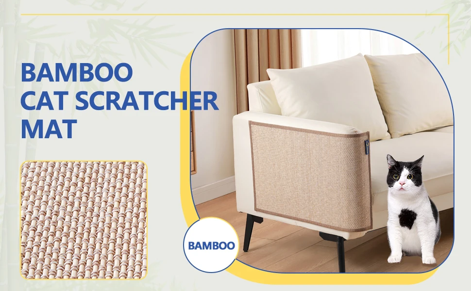 Hecho con materiales de alta calidad, Esta almohadilla para rascar es duradera. La textura natural de la alfombra de bambú atrae a los gatos a rascar y afilar sus garras, evitando que dañen su amado sofá. ¡No más preocupaciones por astillado o arañazos desagradables en sus muebles!